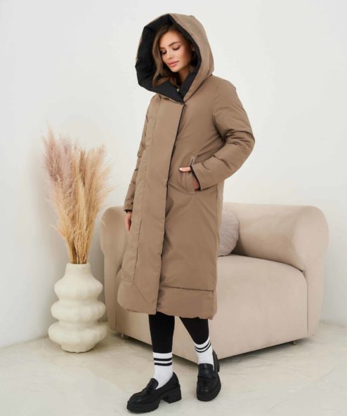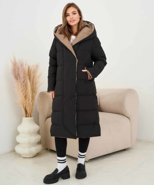 Черно-бежевое двухстороннее зимнее пальто Kleo