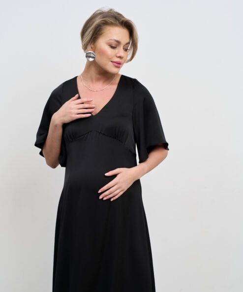 Нежное платье для будущих мам из тонкого вискозного атласа. Женственная длина макси, V-вырез и струящиеся рукава создают элегантный и неповторимый образ. Платье отлично подойдет для торжественных мероприятий и фотосессий. В таком платье вы будете чувствовать себя утонченно и изысканно на любом сроке беременности и после.