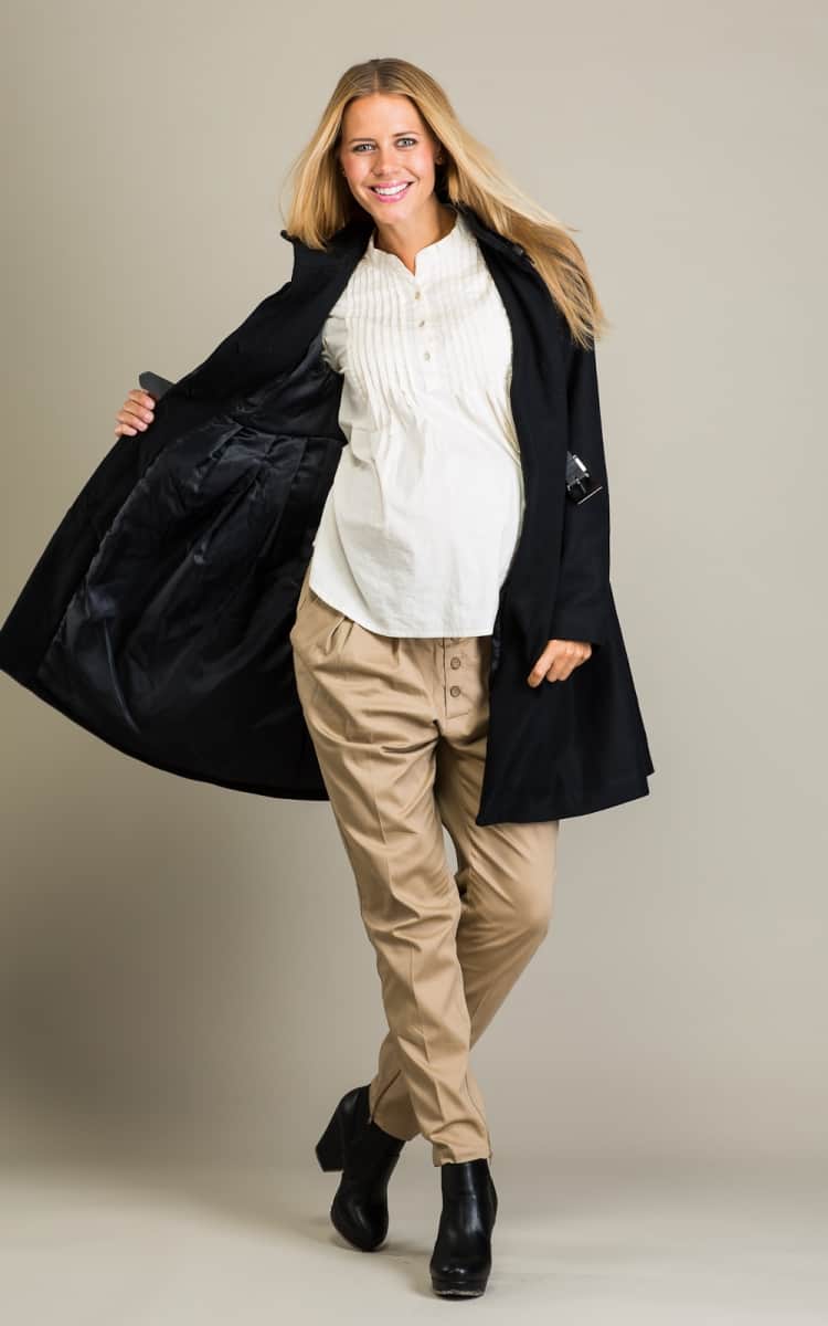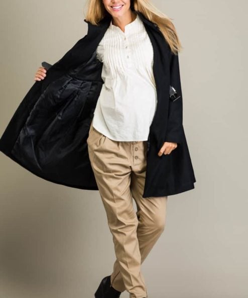 Стильное удлиненное пальто для беременных. Подходит для любого срока беременности, большой запас для животика. Замечательно смотрится с платьями длины мини и миди.