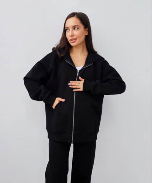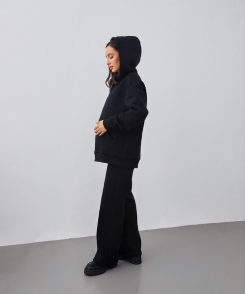 Актуальное худи с молнией из плотного хлопкового трикотажа с начесом, которое подойдет на весь период беременности и после. У модели предусмотрены двойной капюшон и удобные карманы. В комплект к худи вы можете приобрести черные теплые брюки Flex Warm