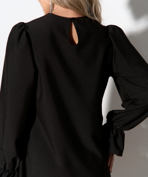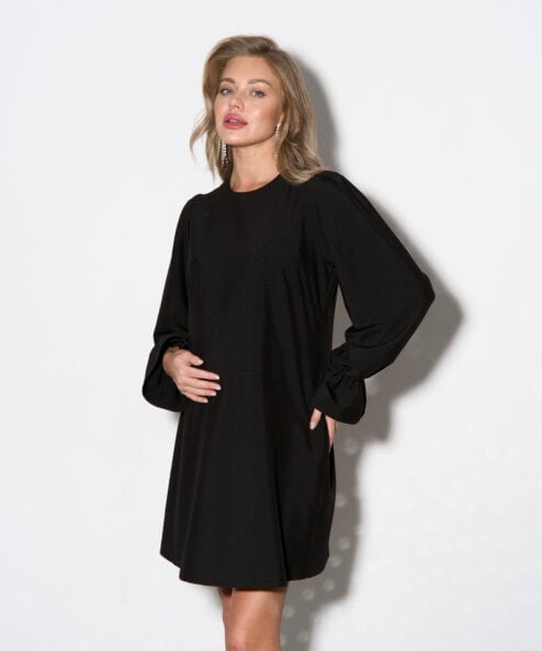 Минималистичное мини-платье из мягкой костюмной ткани, которое подходит на любой срок беременности и после. В нем вы будете обворожительны на любом мероприятии, в любое время года. Особенности модели: А-силуэт, пышные рукава на резинках, застежка сади на пуговицу.
