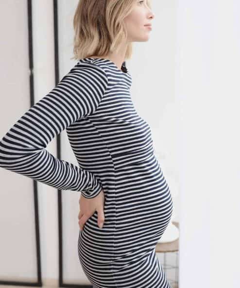 Платье прилегающего силуэта — отлично подчеркнет особенности фигуры будущей мамы. Комфортно ощущается на теле и не сковывает движение. Можно носить как во время беременности, так и после: секрет кормления — верхняя часть полочки заходит на нижнюю.
