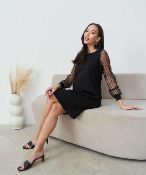Коктейльное платье Collette — это прекрасный вариант на праздничные мероприятия. Отличная посадка, мягкая  ткань, идеальная длина и оригинальная сетка на рукавах сделают это платье вашим любимым образом на выход. Секрет кормления в виде потайных молний позволит молодым мамам незаметно покормить своего малыша.