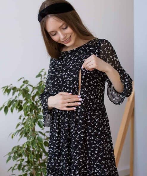 Черное платье для будущих и кормящих мам Vanilla