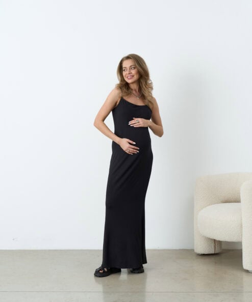 Стильное платье-комбинация длины макси, подчеркивающее изгибы фигуры. Выполнено из премиального трикотажа — мягкой, суперэластичной, дышащей ткани. Платье подойдет на весь период беременности и после, позволит создать стильные повседневные и вечерние образы. В комплекте — вставные чашки для бюста, для вашего максимального комфорта.
