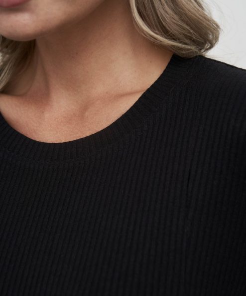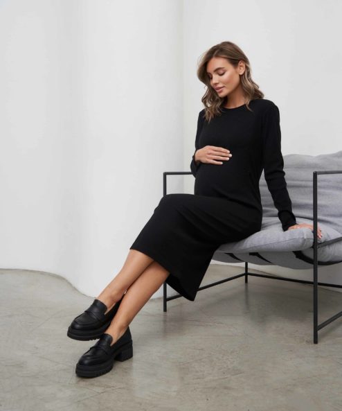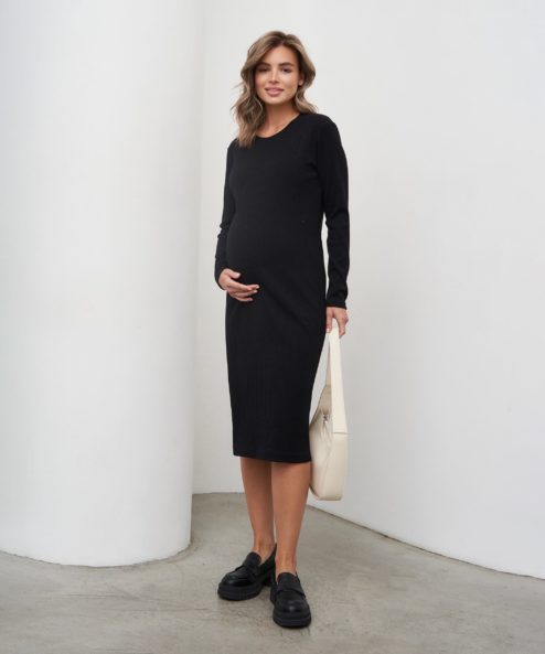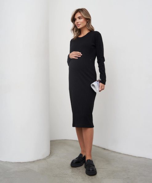 Платье для беременных и кормящих мам облегающего фасона из трикотажа в рубчик.