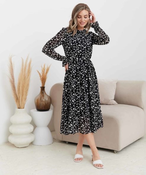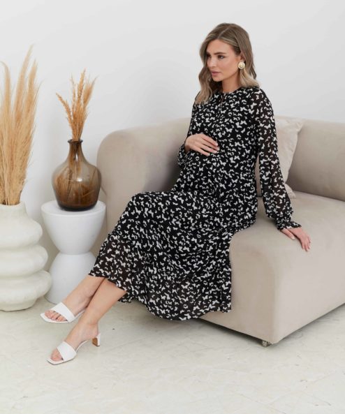 Черное платье с бабочками для будущих и кормящих мам Valencia