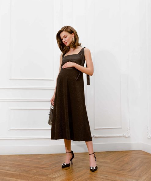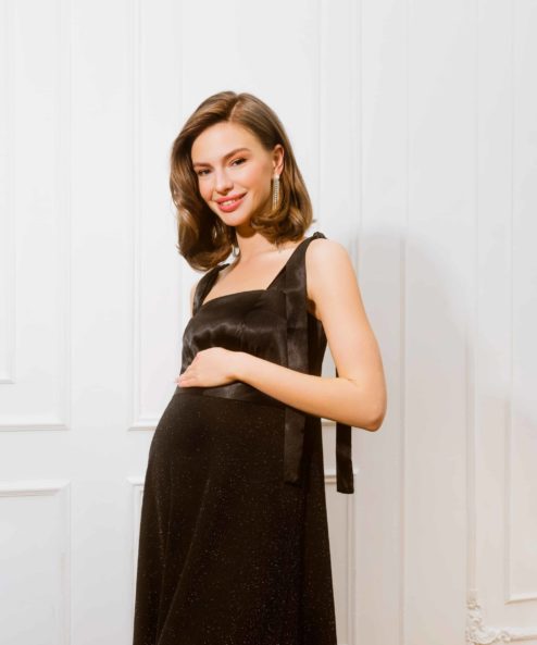 Шикарное платье для беременных и кормящих мам из плотного атлАса в сочетании с мерцающей вискозой. Отлично подойдет для торжественных мероприятий и фотосессий. В таком платье вы будете чувствовать себя утонченно и изысканно на любом сроке беременности и после. Для комфортного кормления малыша просто опустите бретель. Регулируемые завязки позволят  вам посадить платье на любой рост и проявить фантазию — вы можете завязать банты либо оставить ленты спущенными.