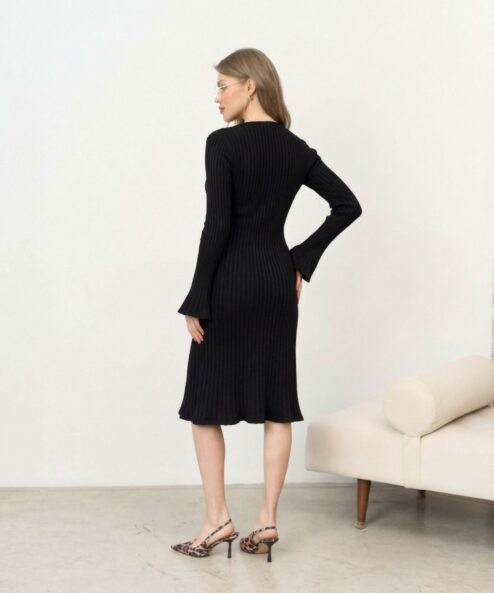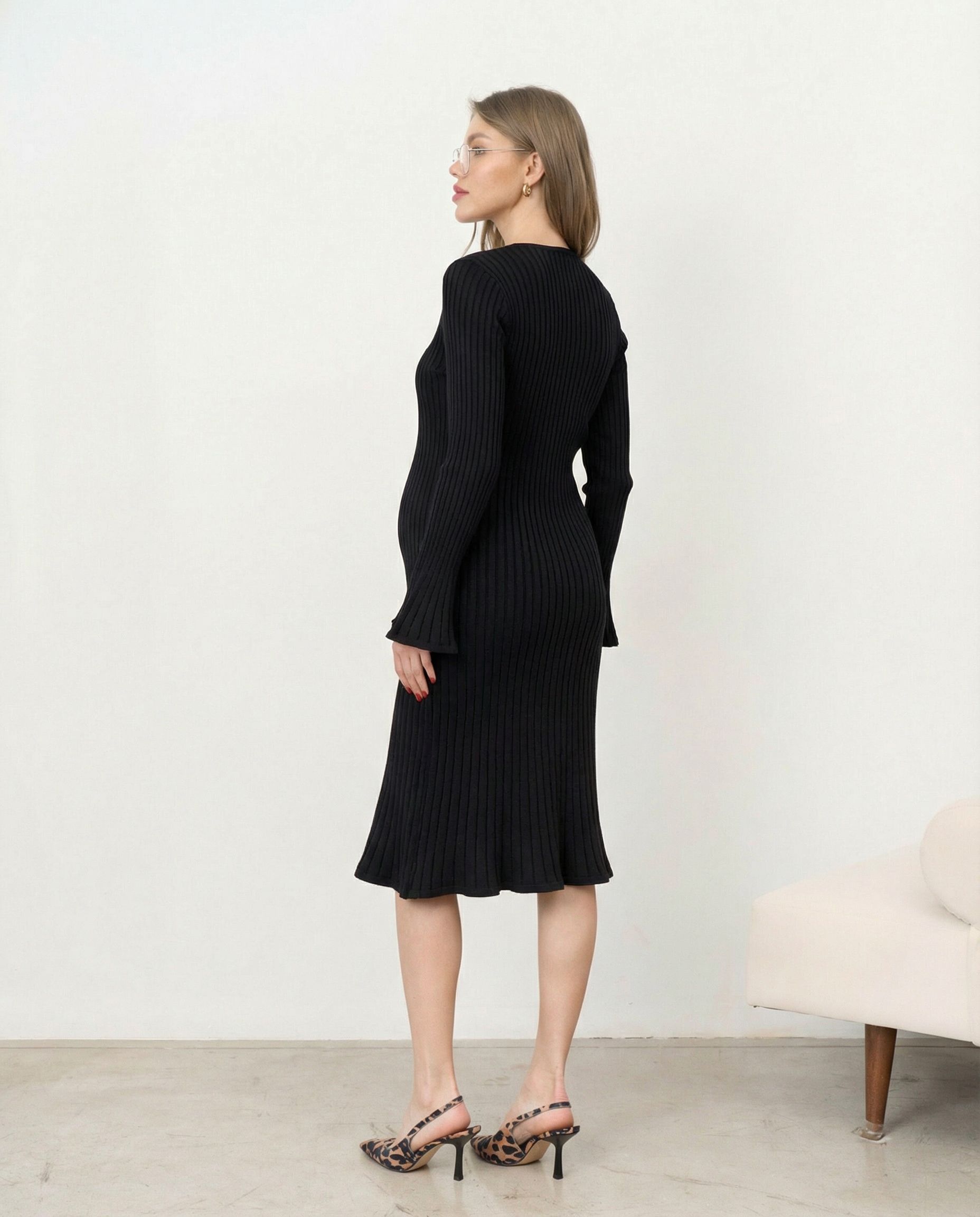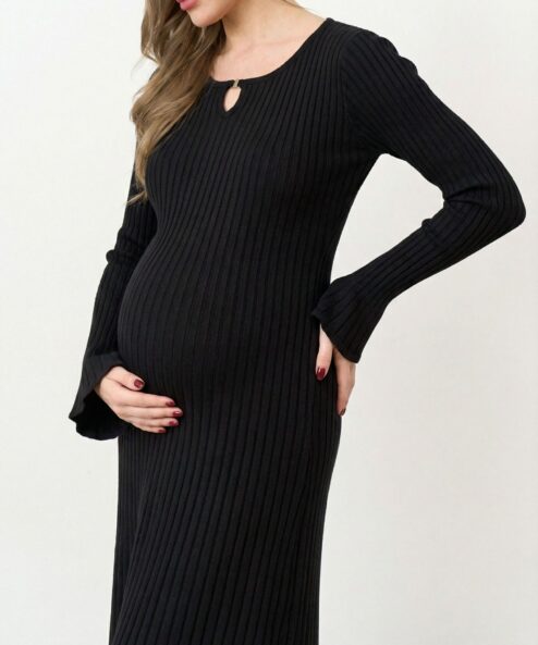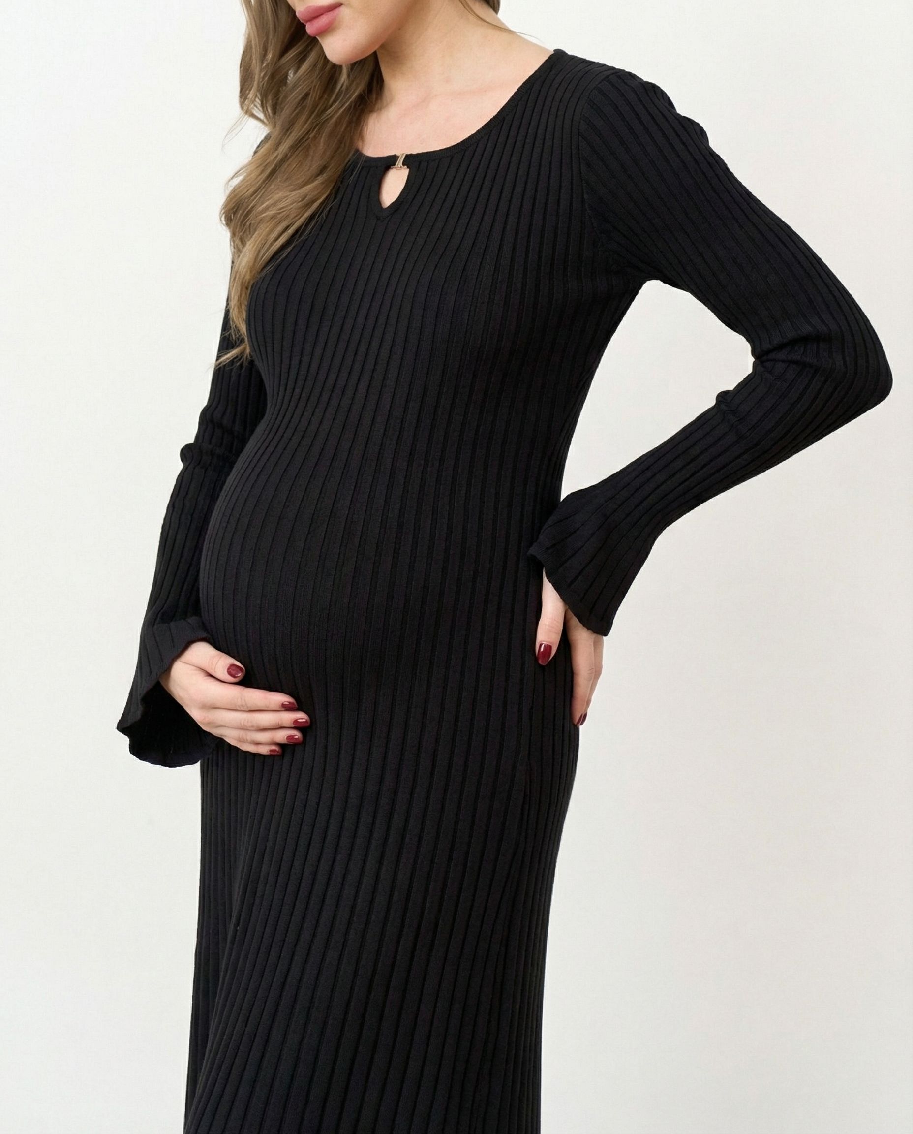 Трендовое платье-миди из трикотажа. В нем вы будете выглядеть эффектно и стильно, а высокая эластичность материала позволит носить это платье на протяжении всего периода беременности и после нее. Без секретов для кормления.
