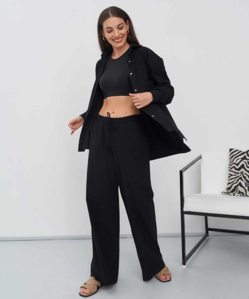 Подойдут на весь период беременности и после. В комплект к брюкам вы можете приобрести Черную рубашку Breeze