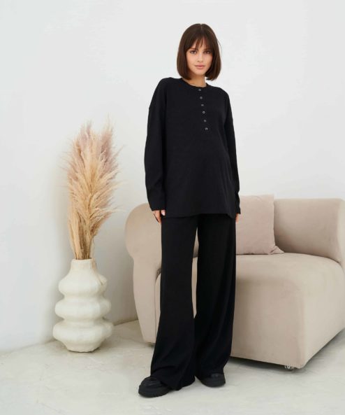 Брюки свободного кроя из трикотажа в рубчик, которые подойдут на весь срок беременности и после. В комплект к брюкам можете приобрести джемпер Kardy