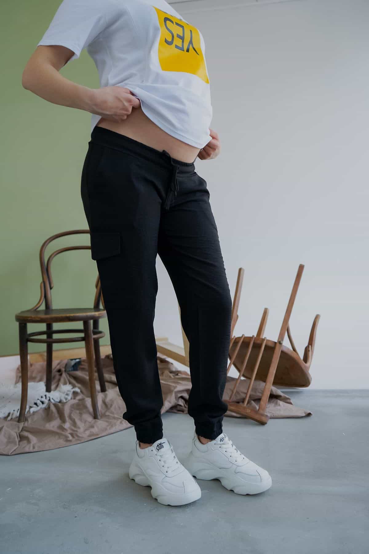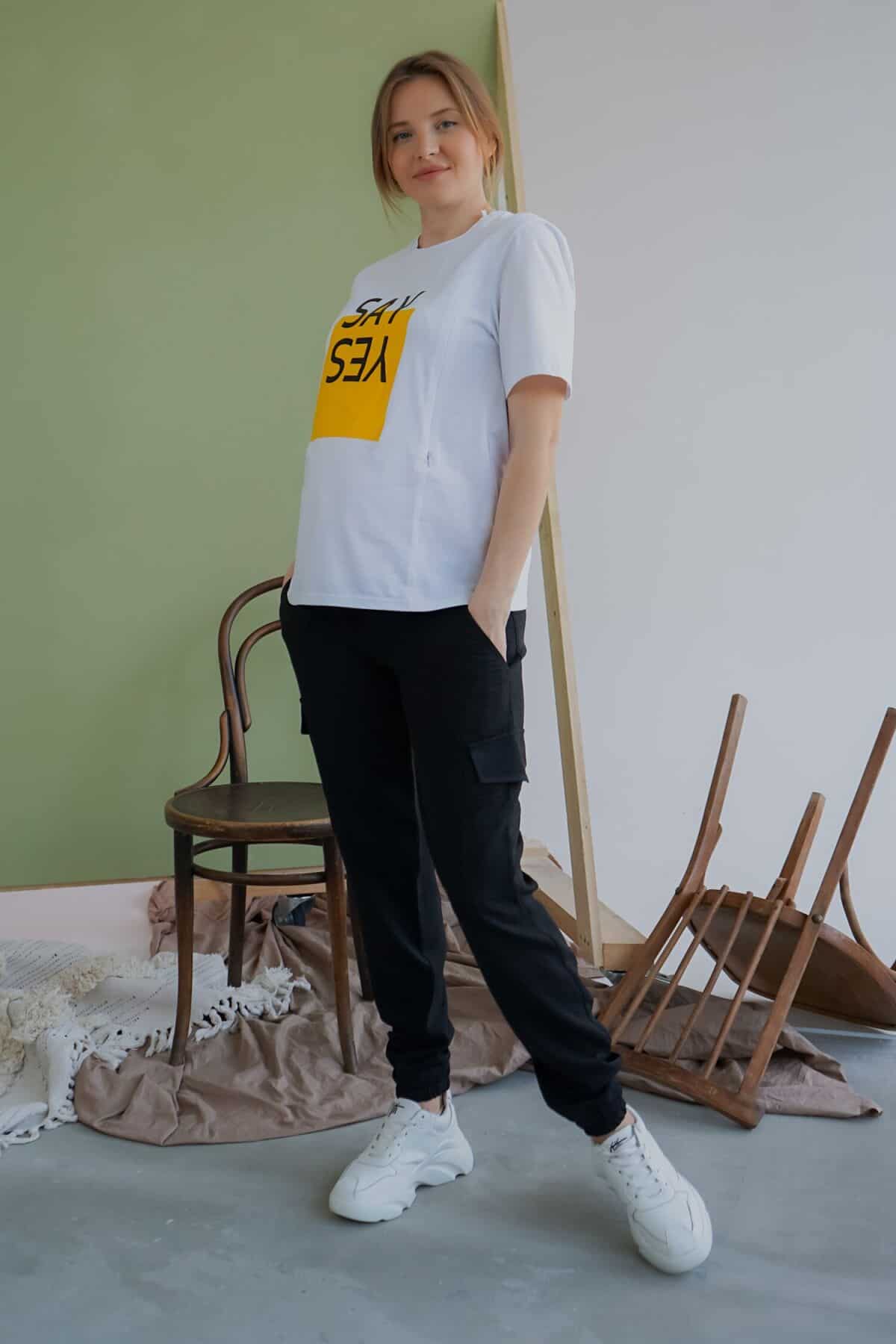 Черные брюки-карго для будущих и кормящих мам Briana