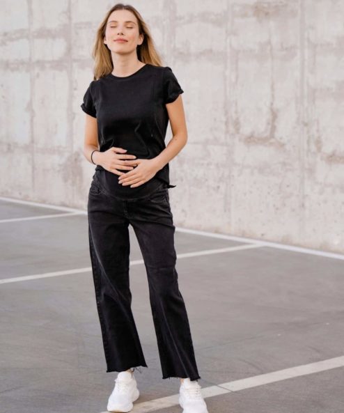 Актуальные джинсы для будущих мам прямого кроя. Предусмотрена бандажная резинка в поясе, которая добавит комфорта при носке и позволит носить джинсы и после беременности.