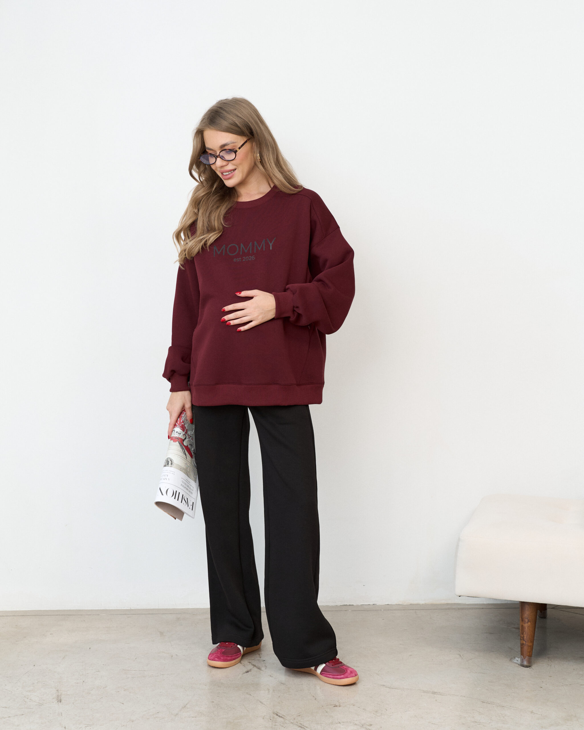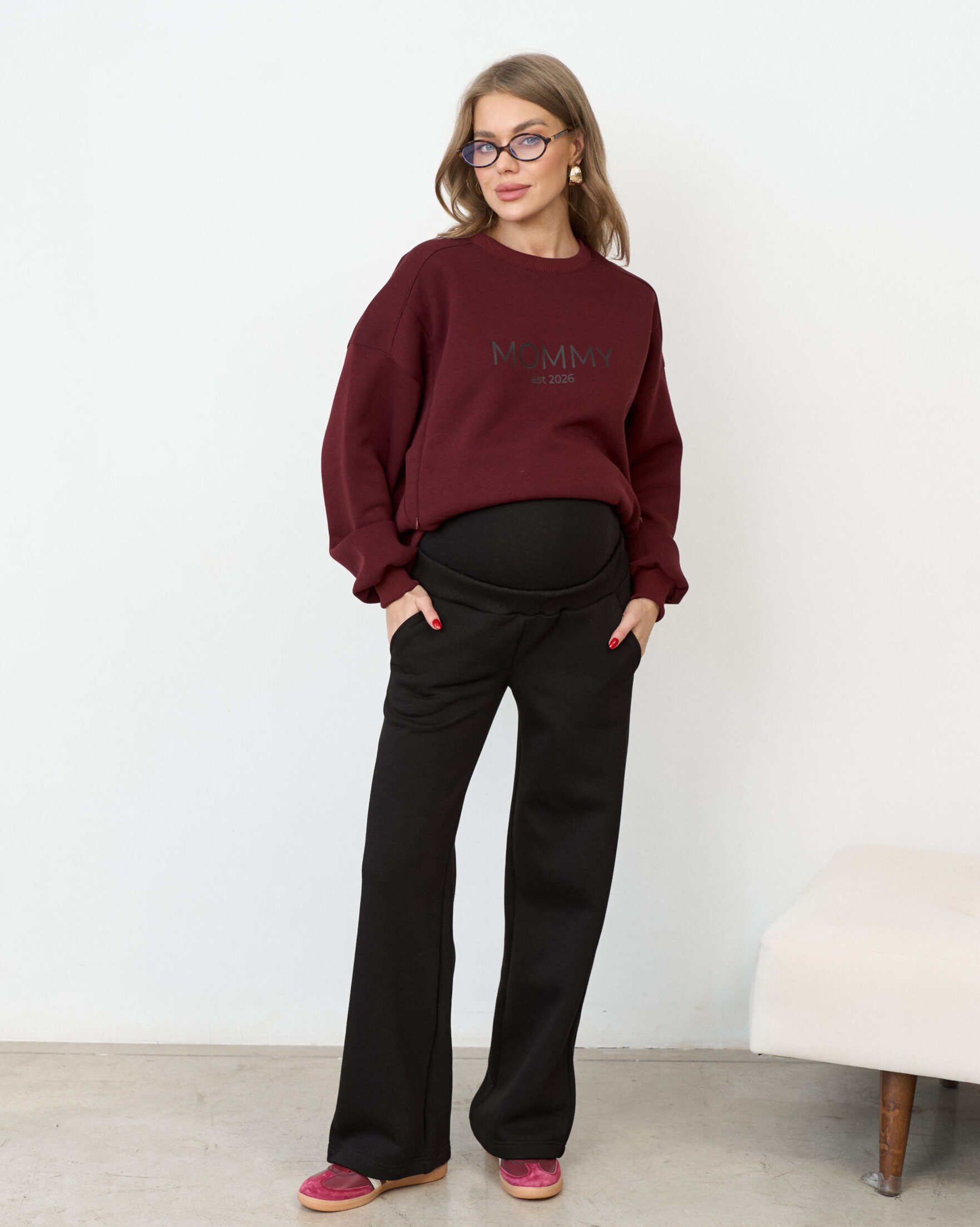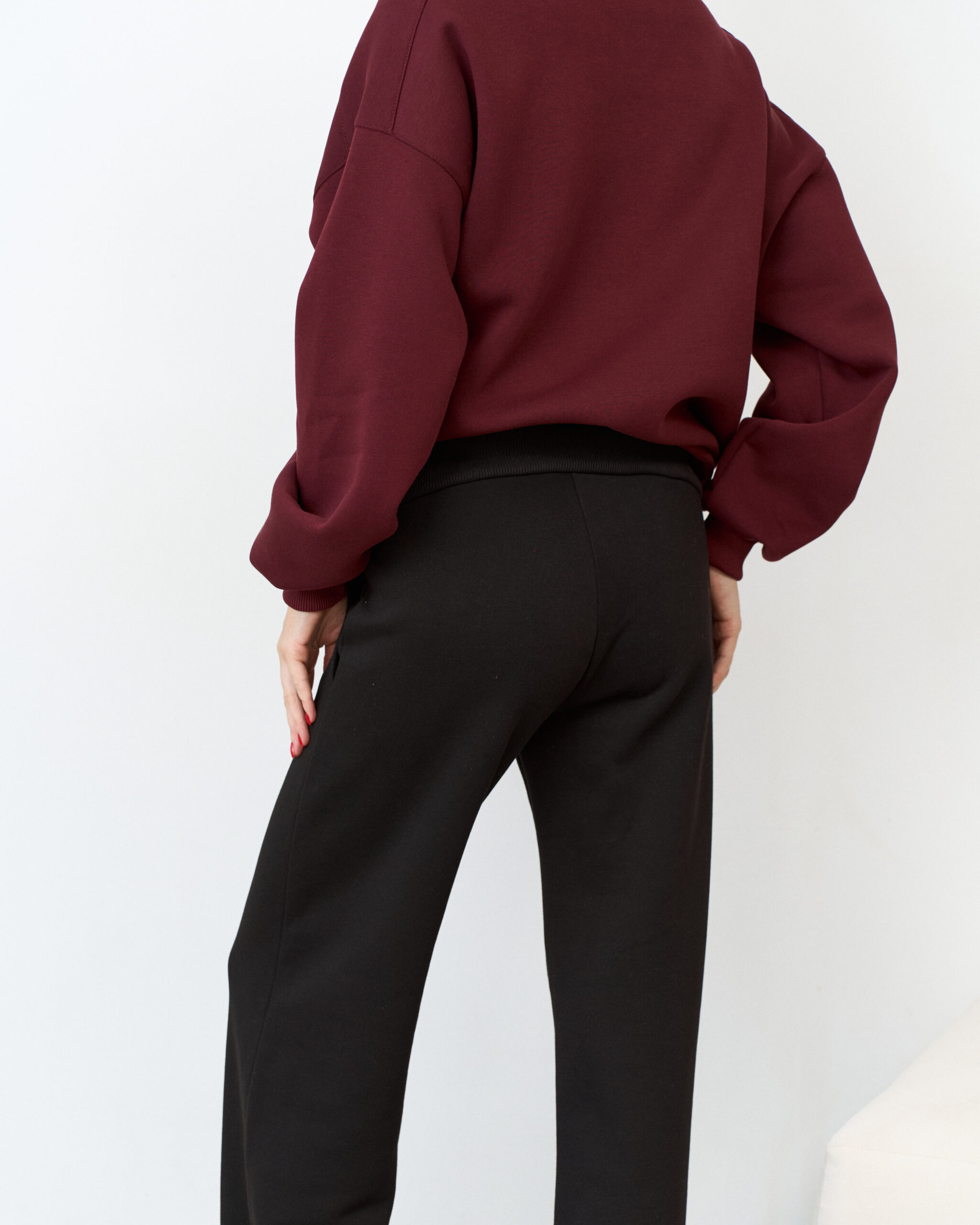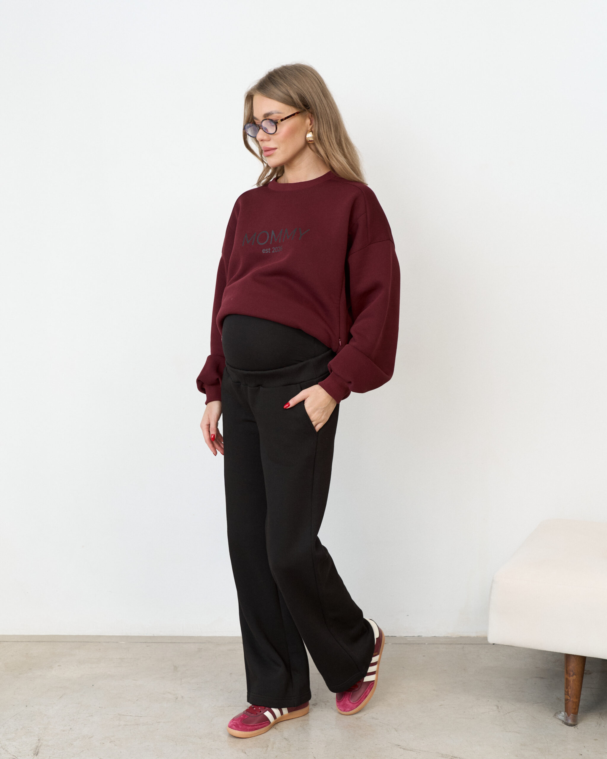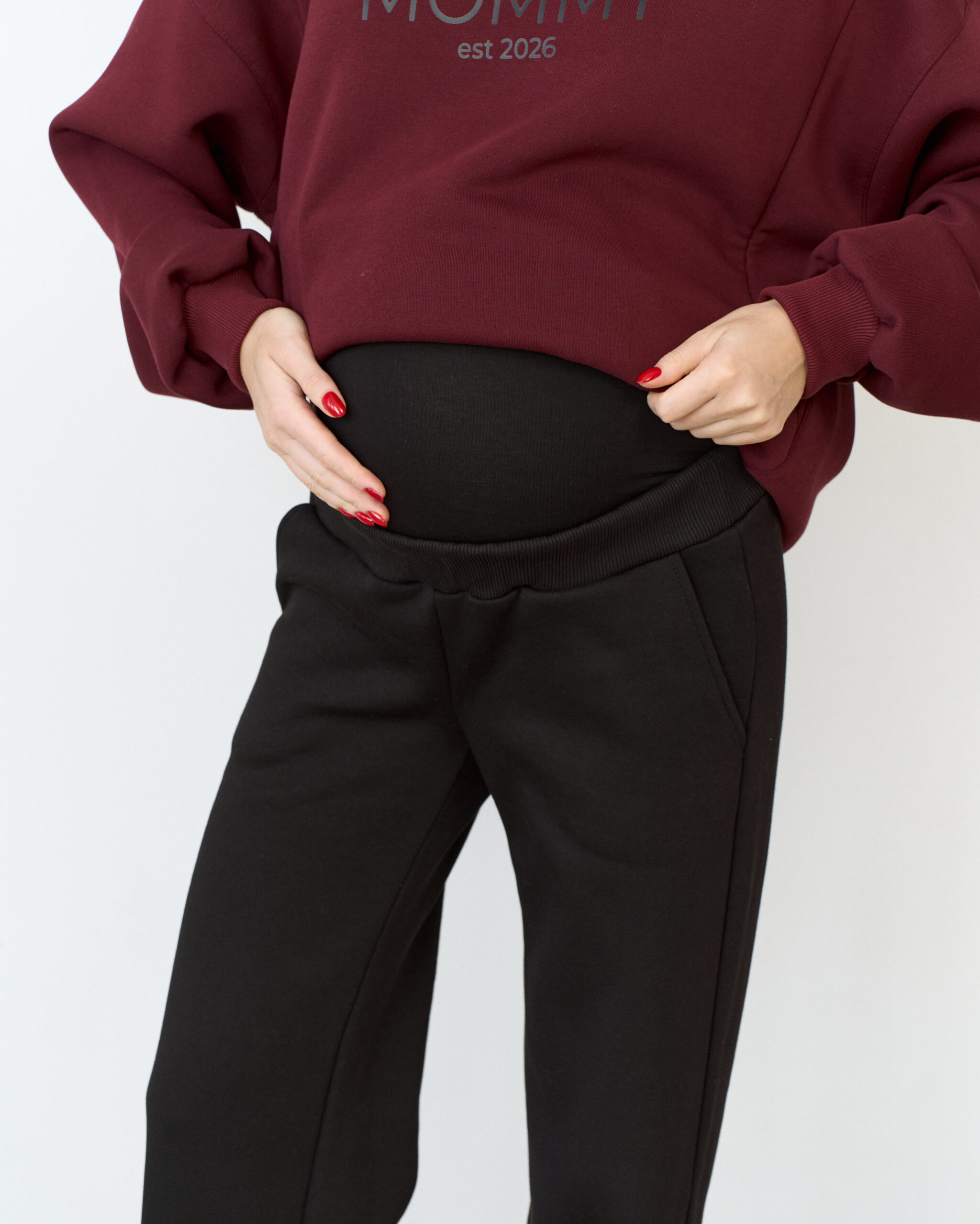 Теплые брюки актуального прямого кроя для будущих и кормящих мам. Ткань с начесом — футер-трехнитка высшего качества «пенье». Высокий пояс из хлопкового трикотажа согреет вас и подарит комфорт на любом сроке беременности. В комплект к брюкам вы можете приобрести черное теплое худи Lima Warm