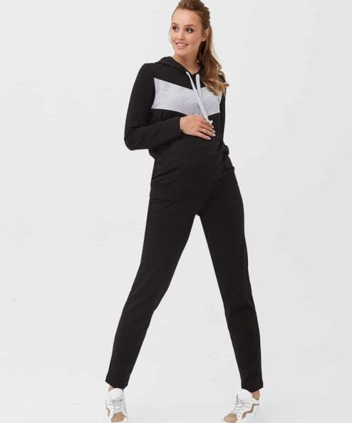 Трендовый костюм с худи для беременных и кормящих в стиле спорт-шик.