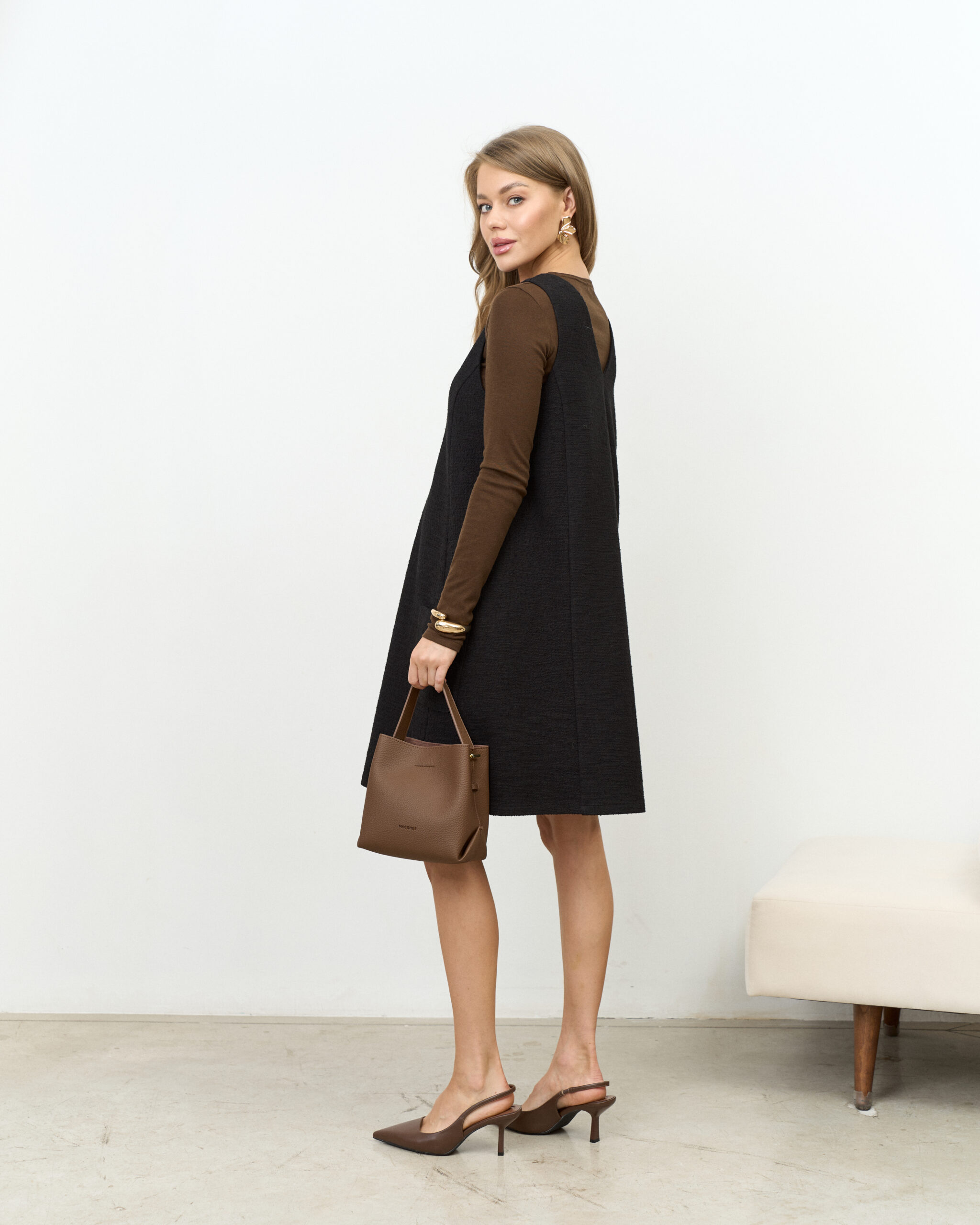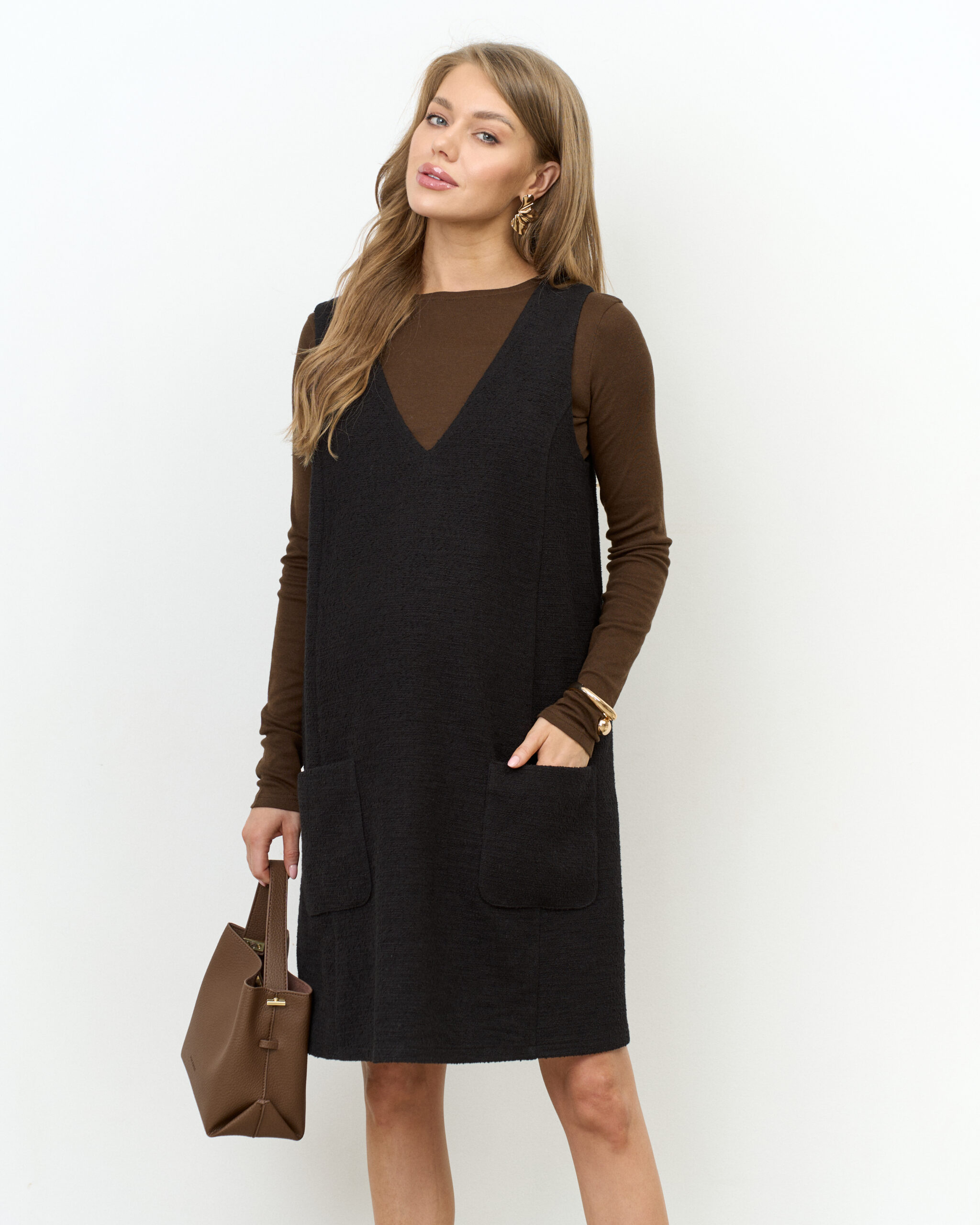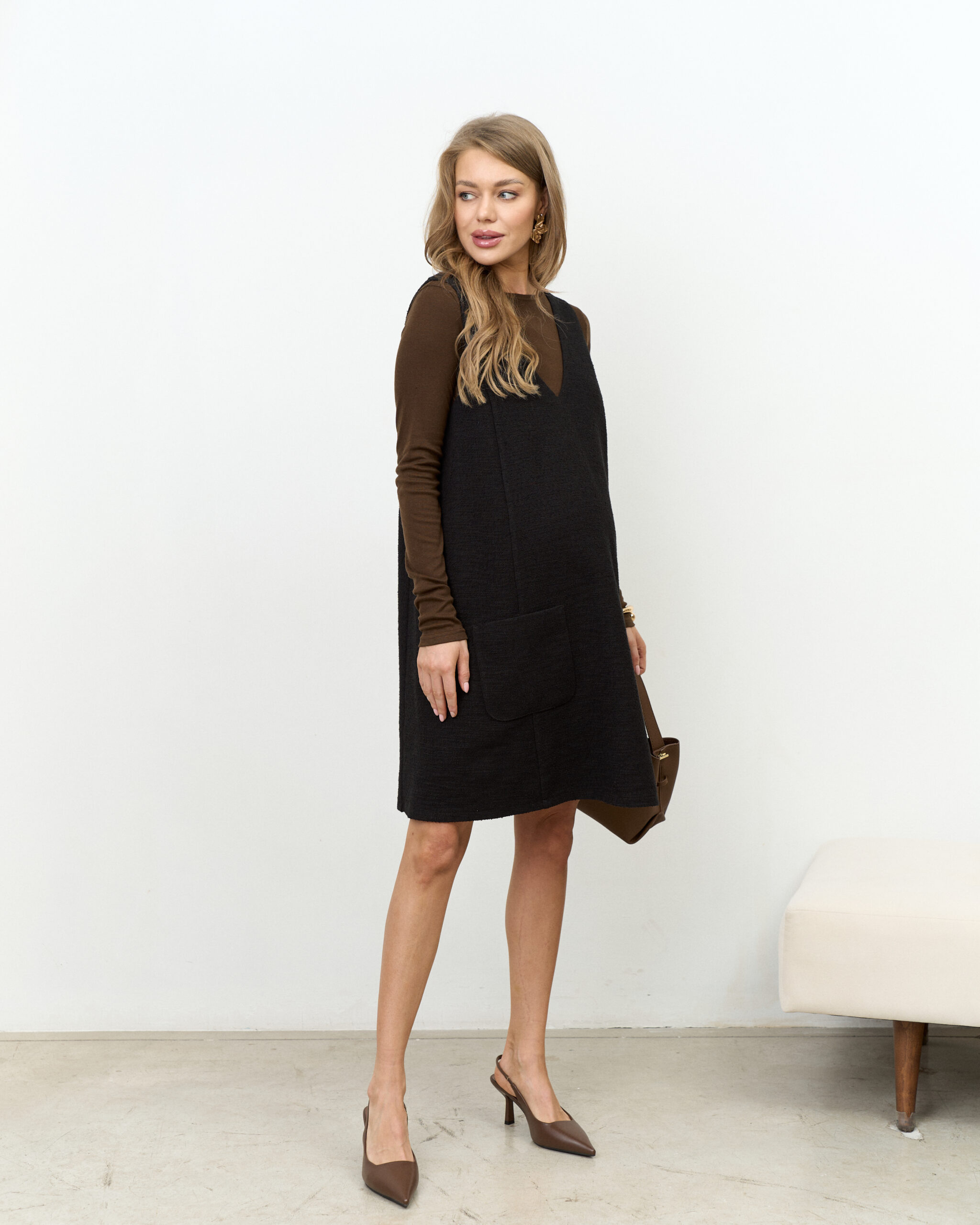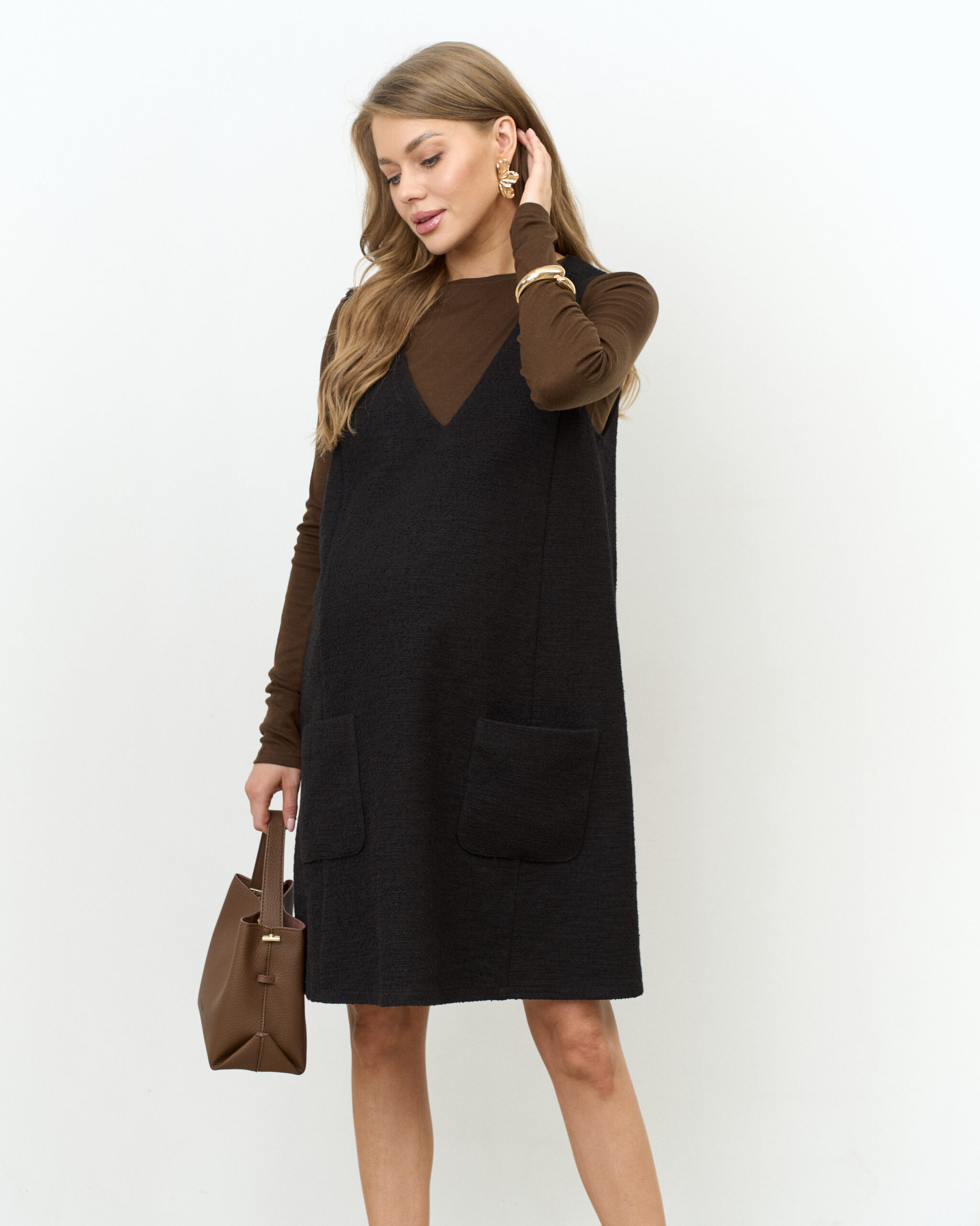 Черный твидовый сарафан для беременных Serena