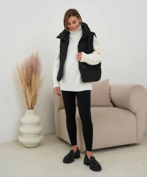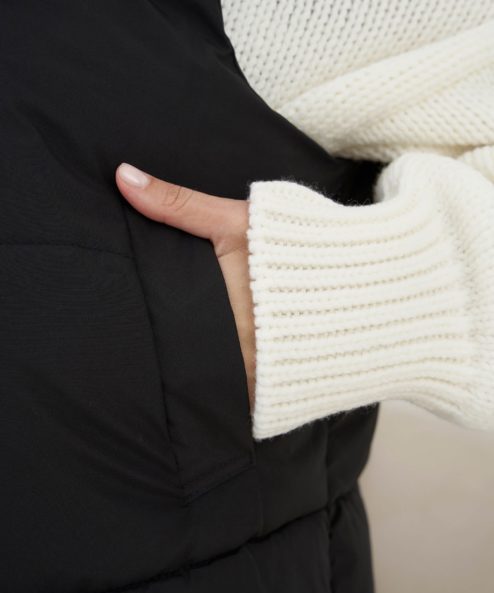 Жилет с теплым наполнителем — идеальный компаньон для создания осенних и зимних многослойных образов. Он согреет в непогоду и подойдет на любой срок беременности и после.