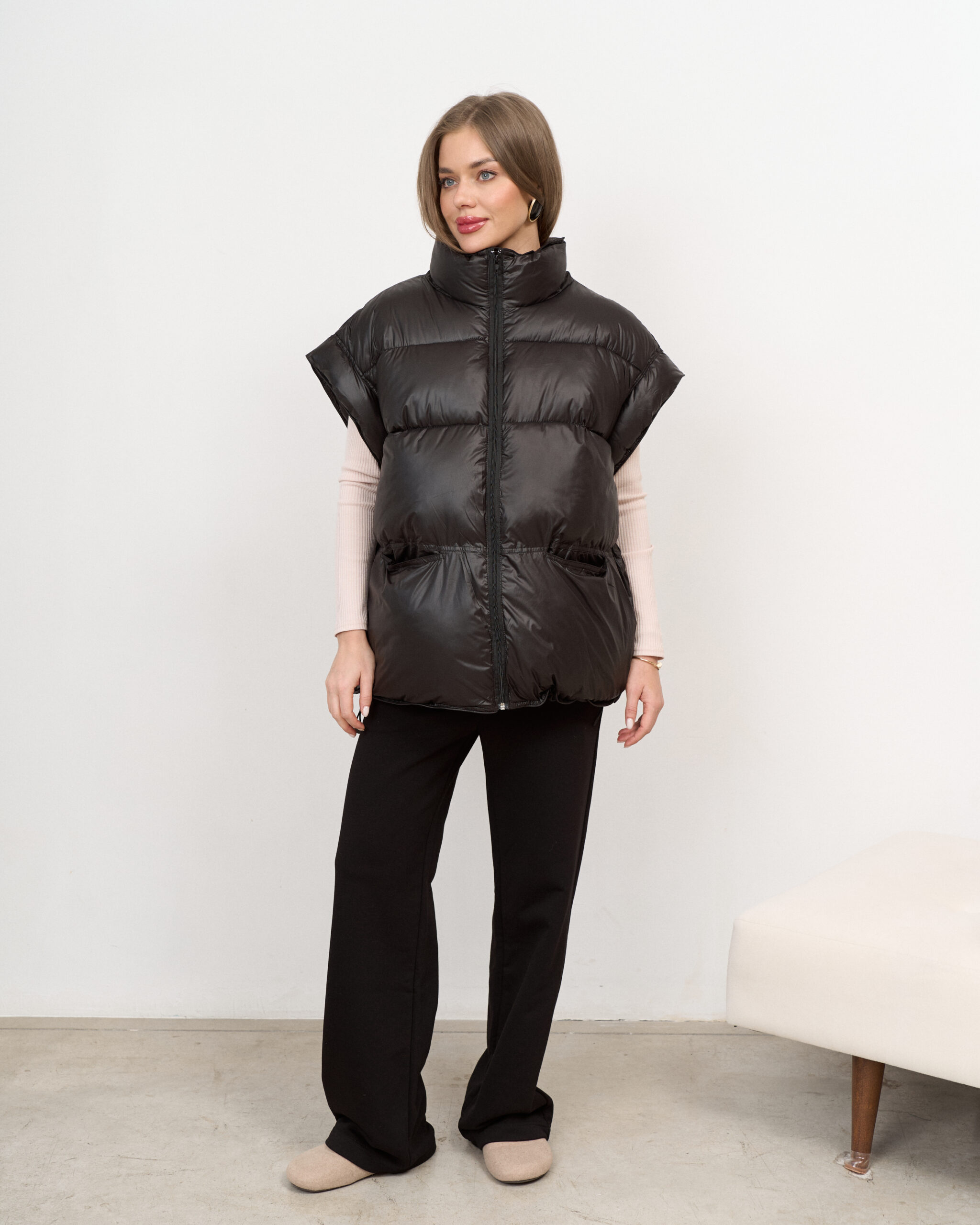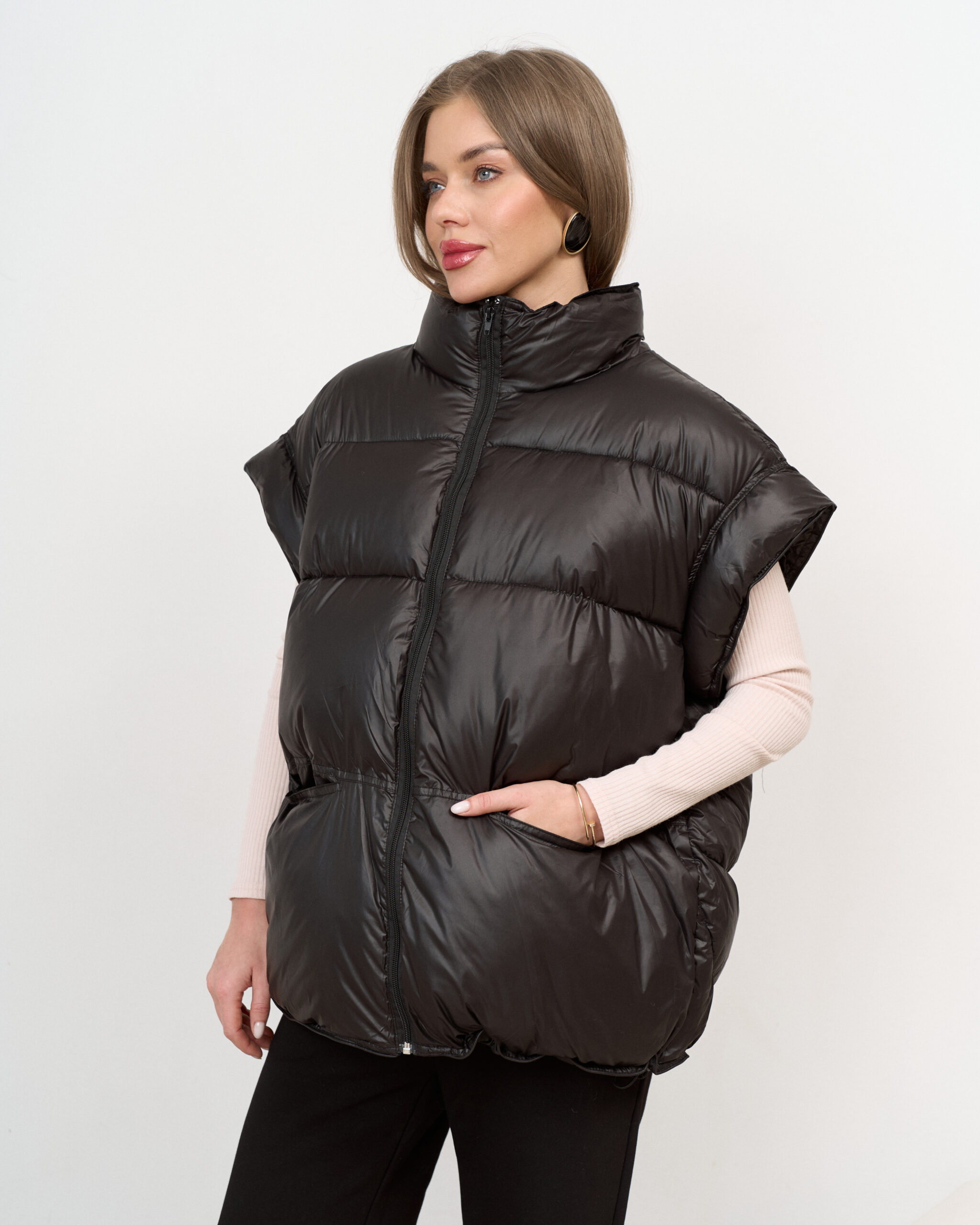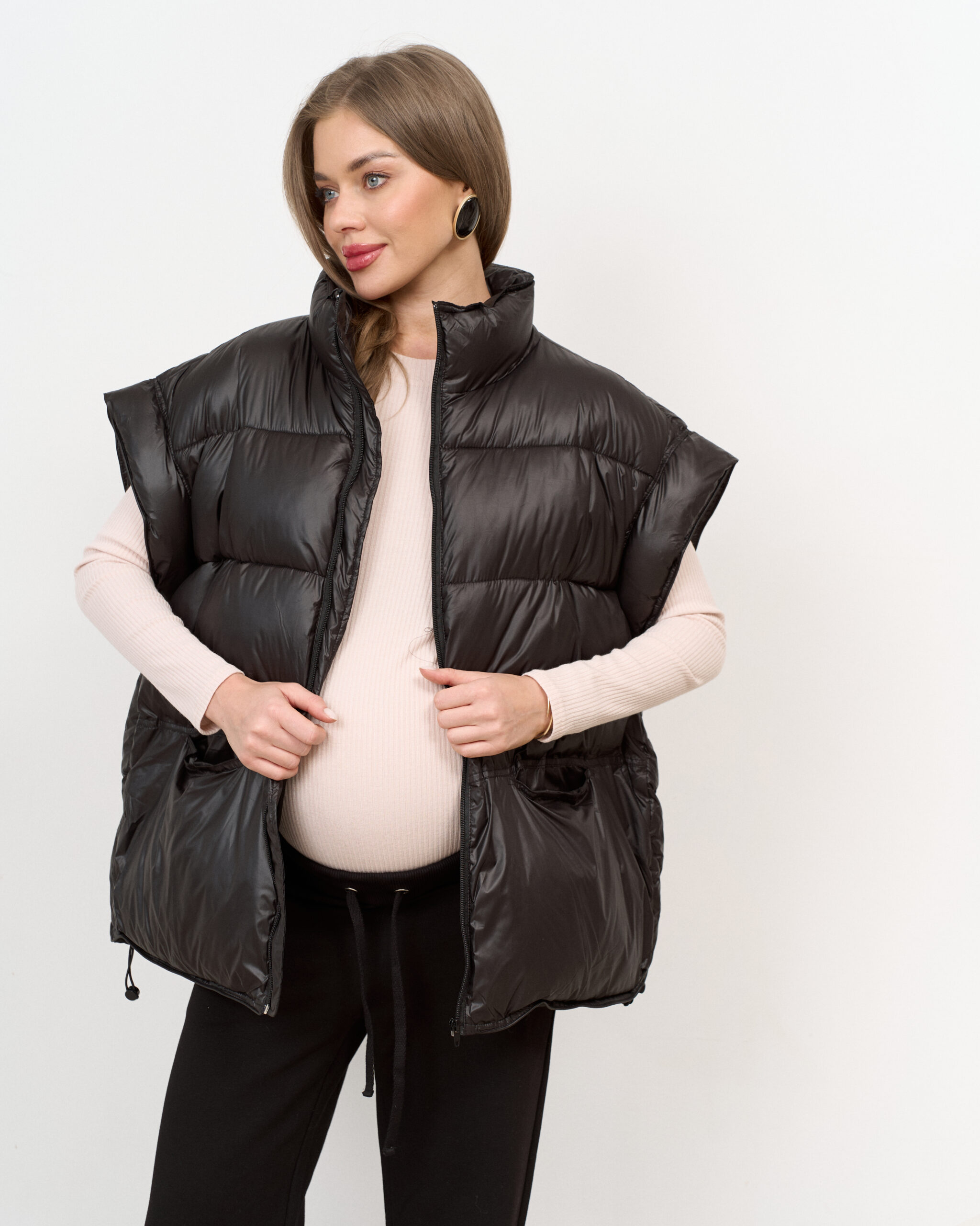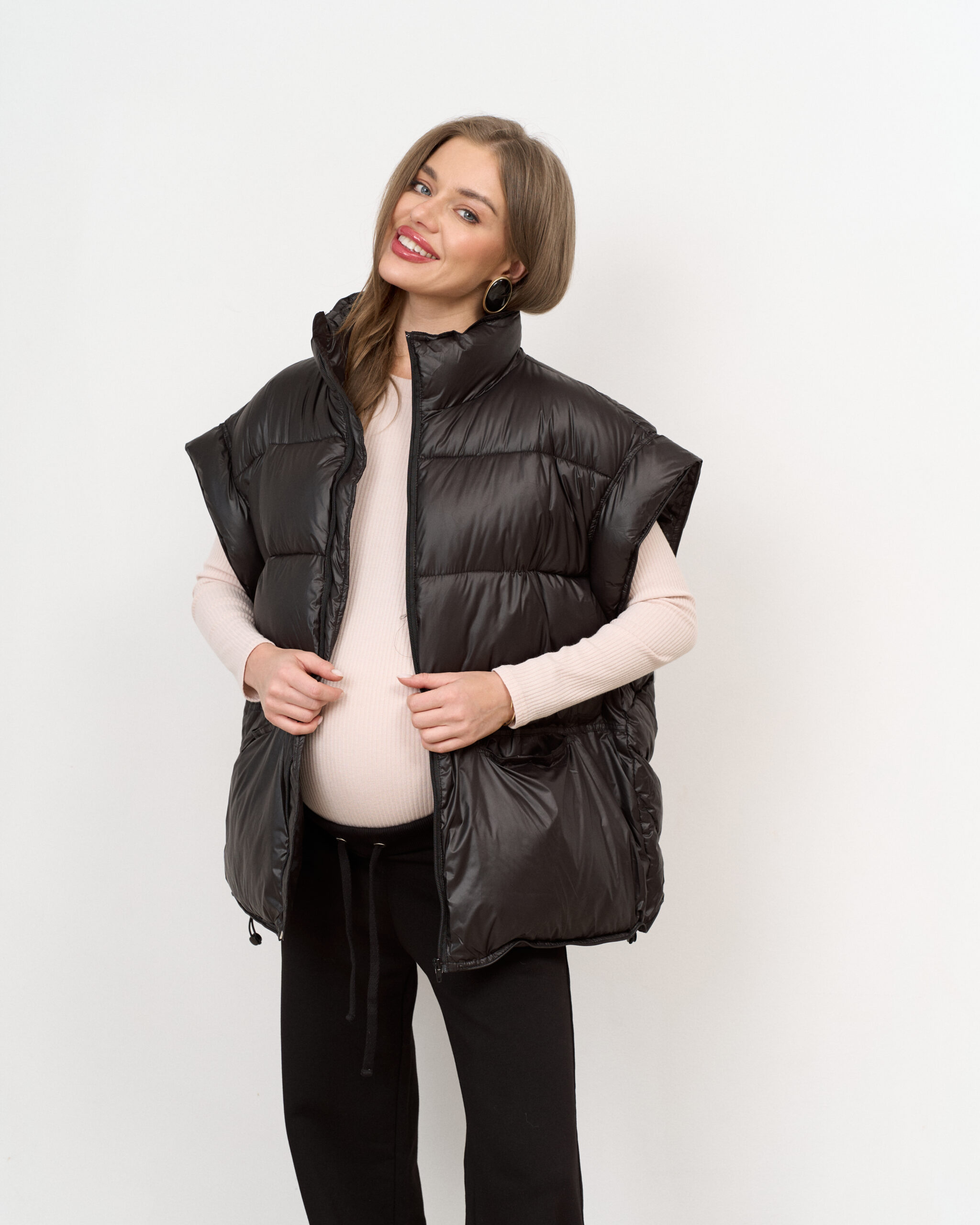 Жилет с теплым наполнителем — идеальный компаньон для создания теплых многослойных образов. Он согреет в непогоду и подойдет на любой срок беременности и после.