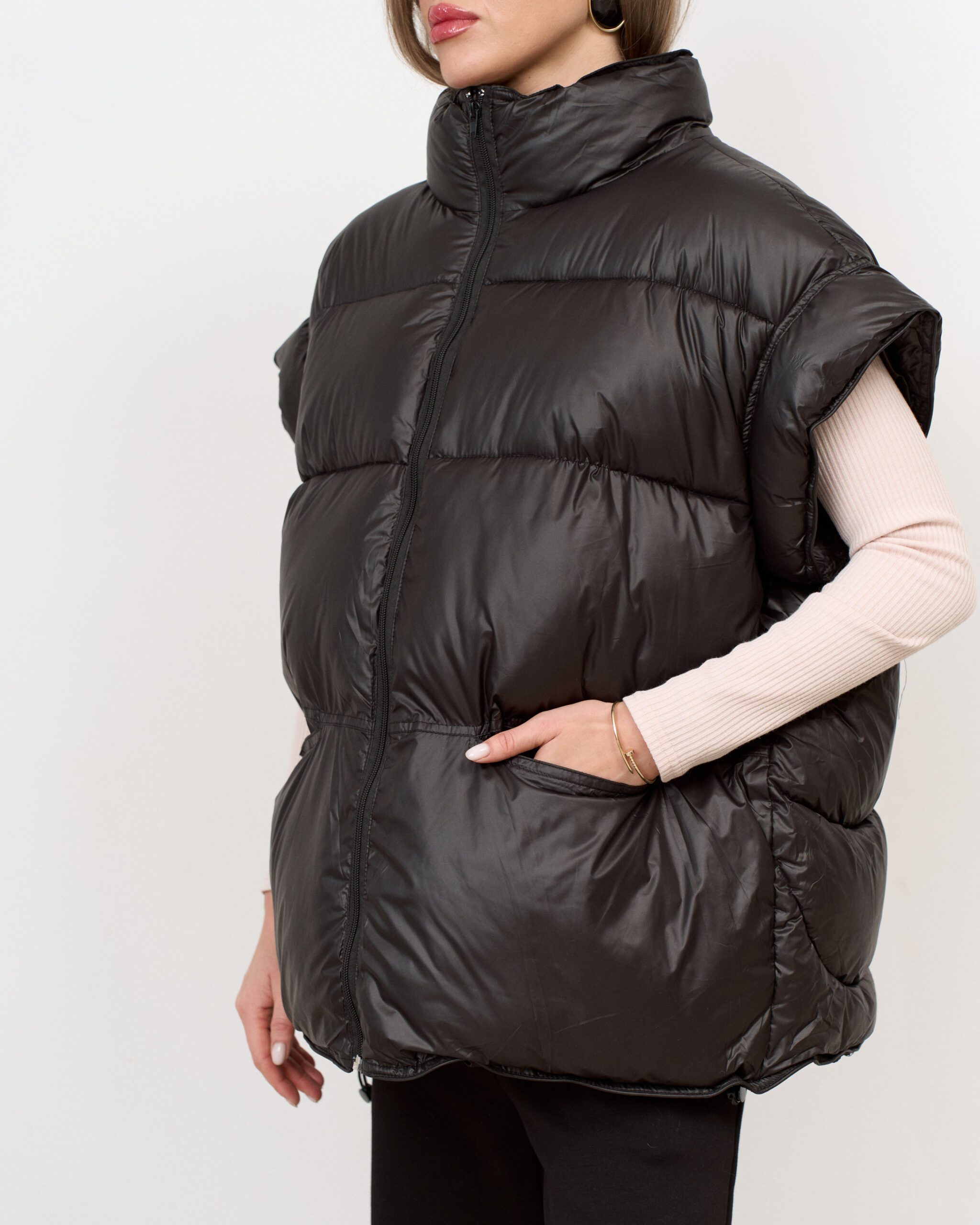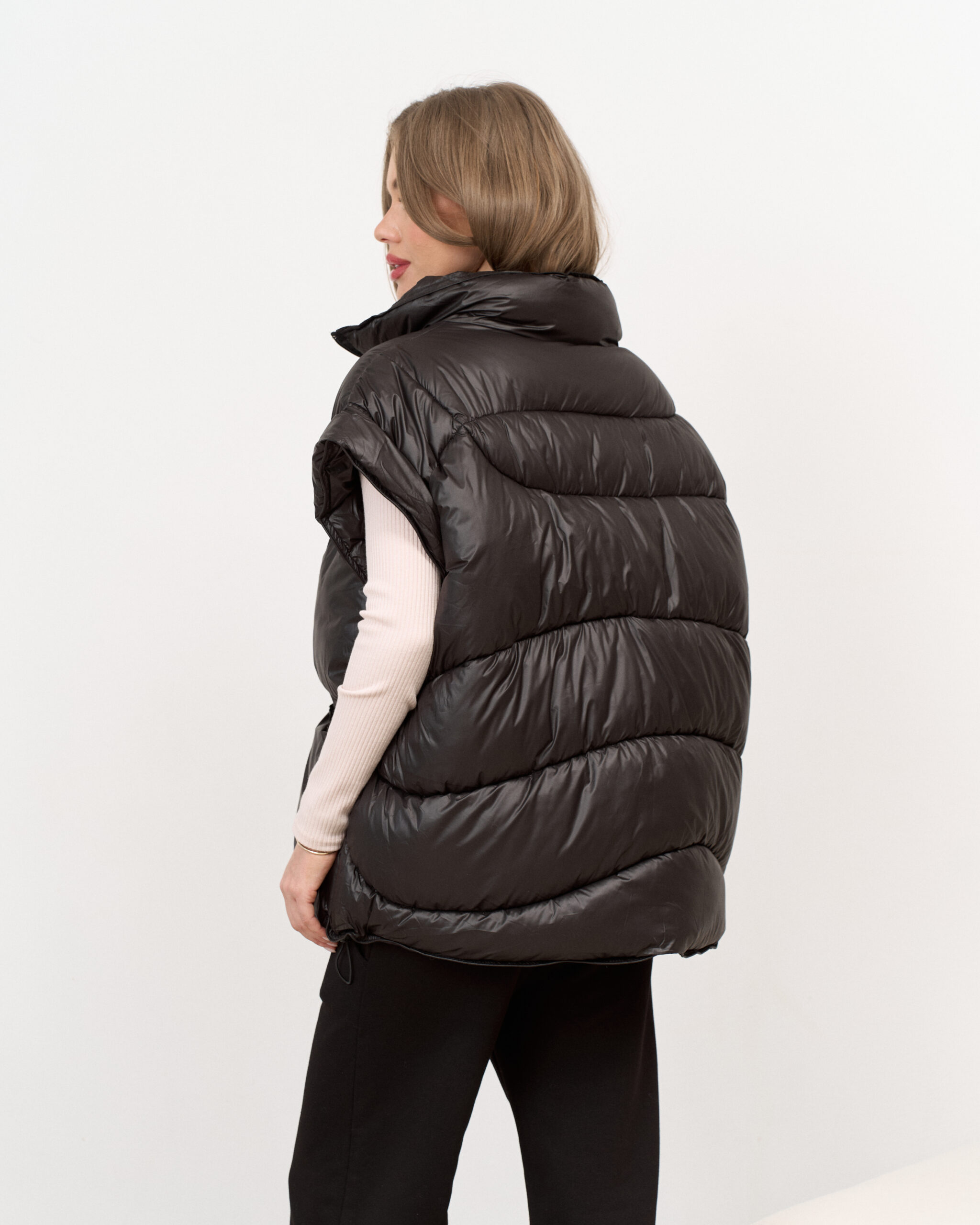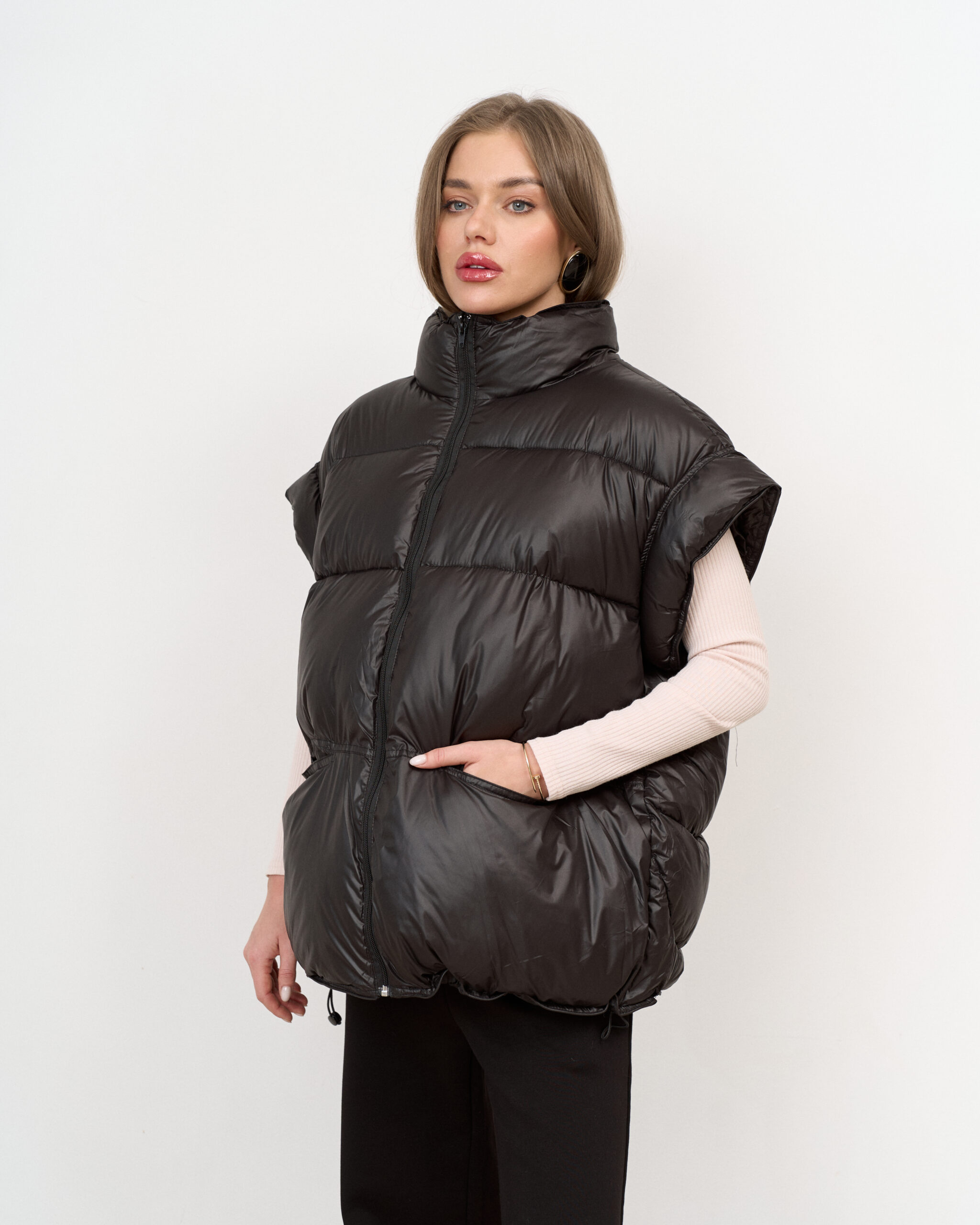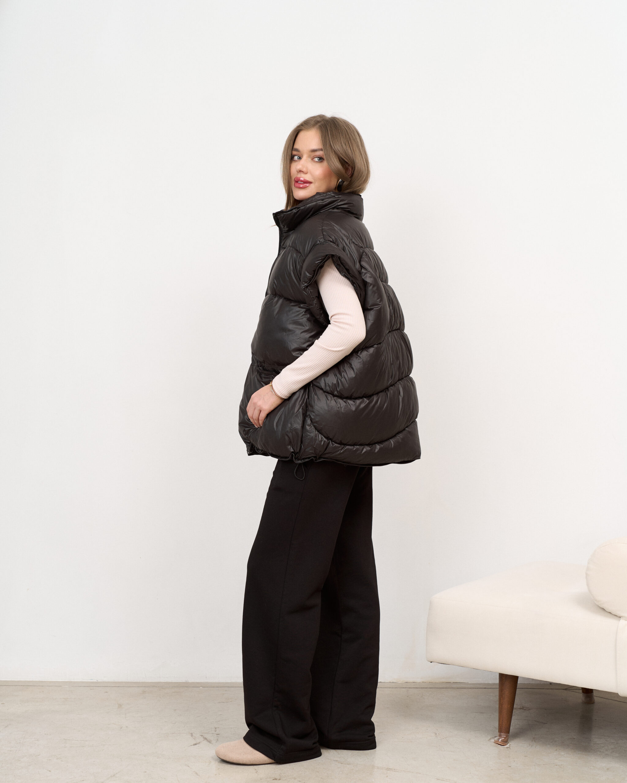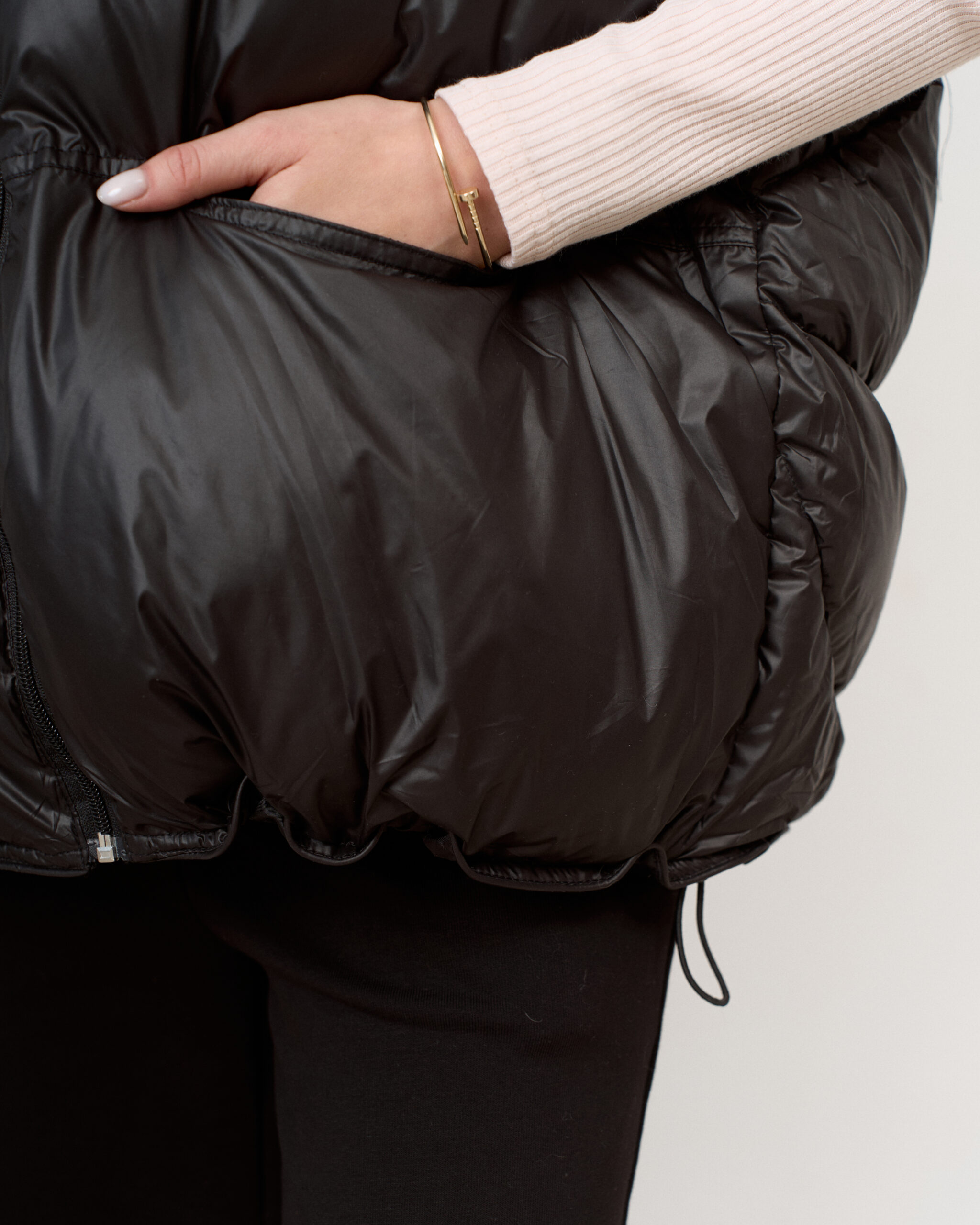 Жилет с теплым наполнителем — идеальный компаньон для создания теплых многослойных образов. Он согреет в непогоду и подойдет на любой срок беременности и после.
