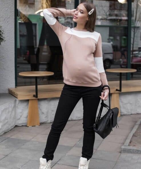 Тип пояса — комбинированный: бандажный под живот высокий трикотажный пояс на живот с регулировкой, что позволяет носить эту модель во время и после беременности (предварительно убрав высокий пояс).