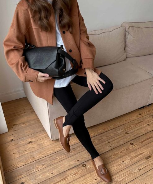 А чтобы продолжать носить любимые леггинсы после родов, нужно отпороть высокий пояс по специально предназначенной для этого красной линии.