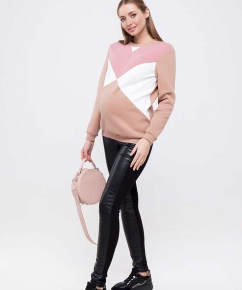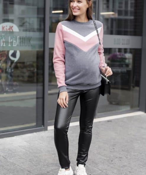 Модные брюки-лосины для беременных из трикотажа под кожу на меху.