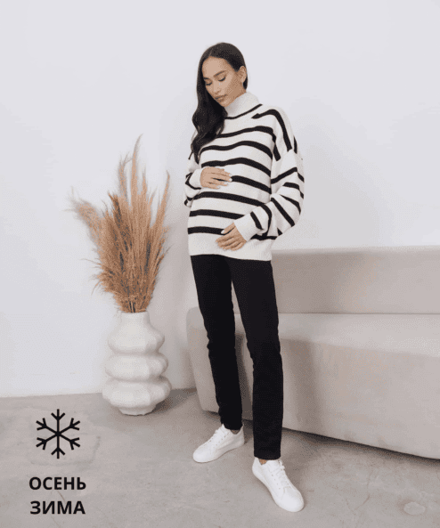 Брюки для беременных из плотного трикотажа c меховой изнанкой и высоким трикотажным поясом.