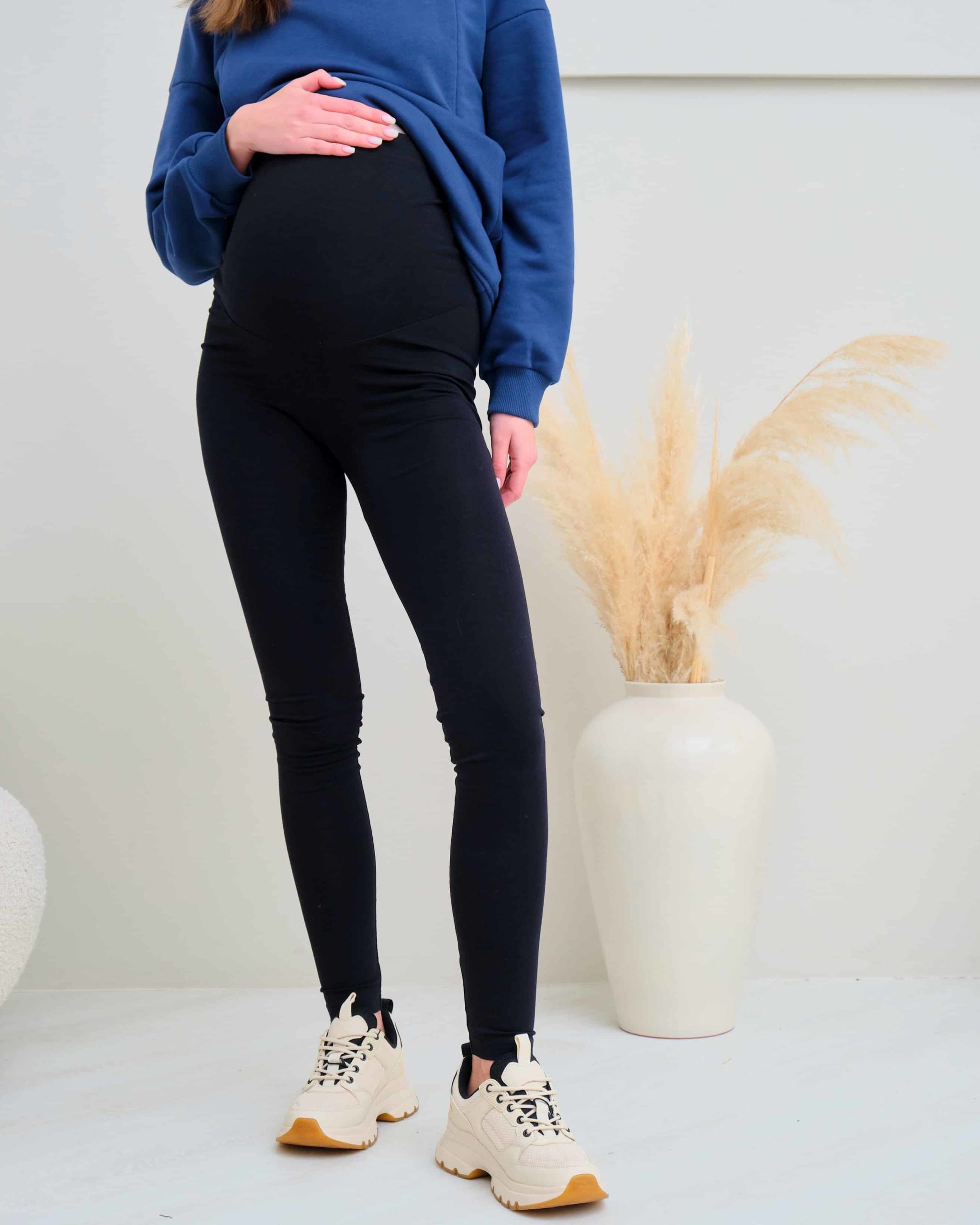 Чёрные теплые леггинсы для беременных Berta