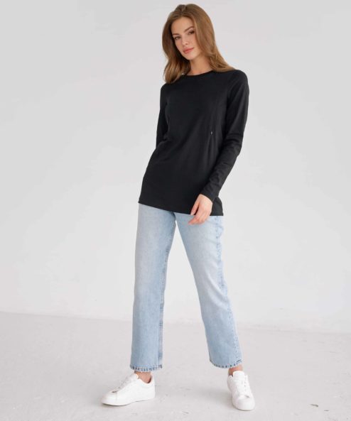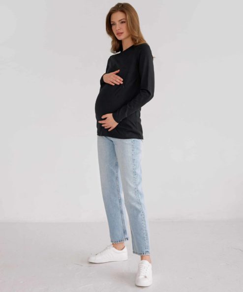 Чёрный лонгслив для будущих и кормящих мам Simple