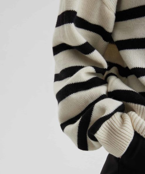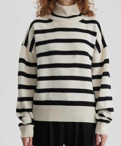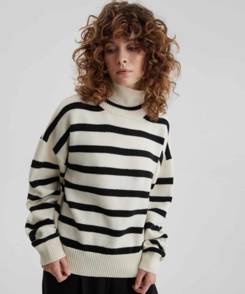 Шерстяной свитер с высоким горлом и спущенной линией плеч, который подойдет на любой срок беременности и после. Мягкая эластичная вязка и натуральный состав пряжи подарят комфорт в любое время года. А актуальный крой позволит создать стильные образы.