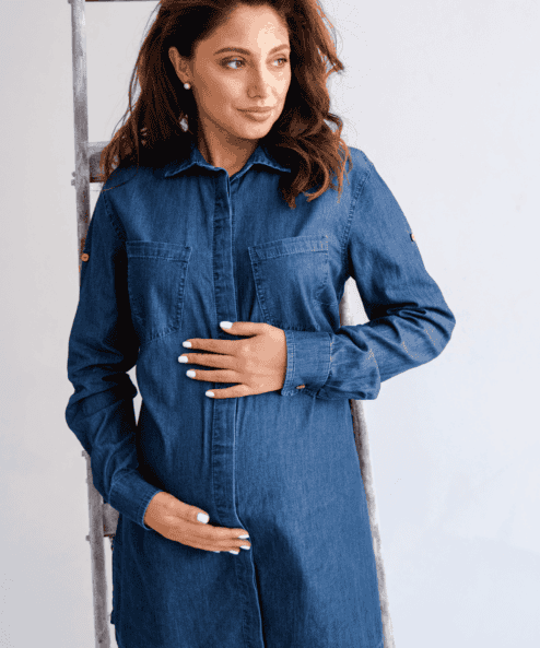 Джинсовая рубашка для беременных и кормящих мам Tori