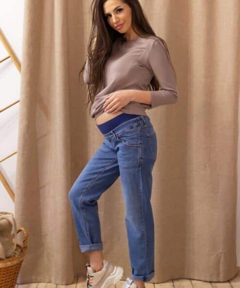 Комфортные джинсы-бойфренды для беременных. Особенности: мягкая бандажная резинка спереди, ПОД живот, два прорезных кармана по бокам и два накладных сзади. Стильный вариант для будущих мам, станет вашим фаворитом в любое время года.