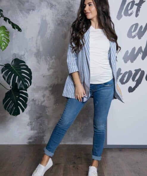Стильные джинсы для беременных с эффектом потертостей. Особенности: мягкая бандажная резинка спереди, два прорезных кармана по бокам и два накладных сзади. Очень стильный вариант для будущих мам, станет вашим фаворитом этим летом и не только. Можно носить и после беременности.
