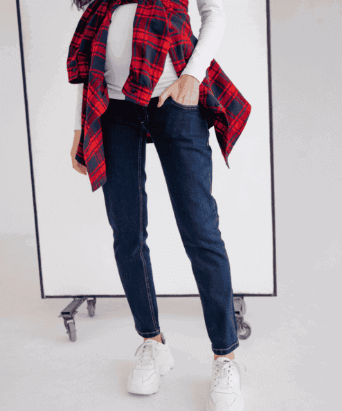 Удобные джинсы Mom’s Jeans с комфортной джинсовой посадкой и трикотажной резинкой на животик с возможностью регулирования на любой объем. Спереди и сзади предусмотрены рабочие карманы.