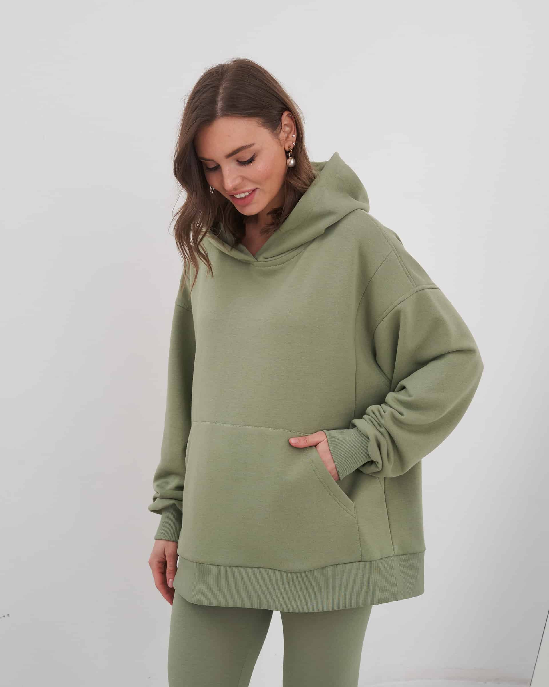 Фисташковое худи-оверсайз для беременных и кормящих мам Juna