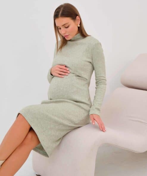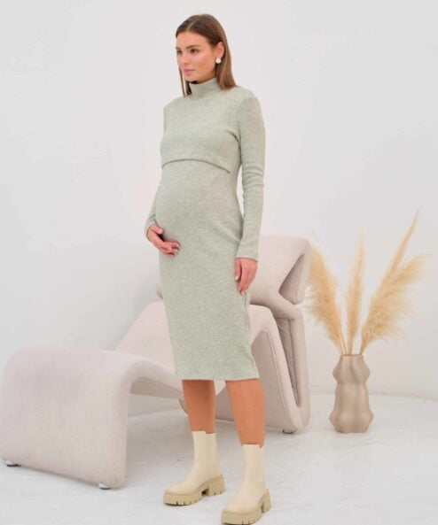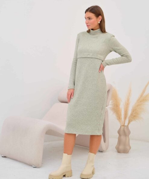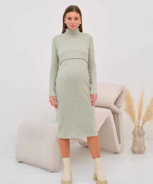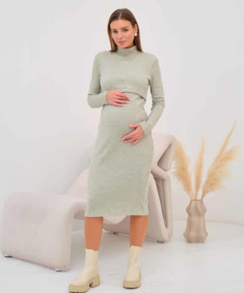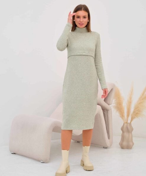 Фисташковое теплое платье для будущих и кормящих мам Fresno