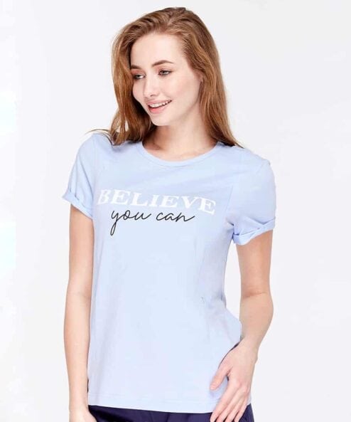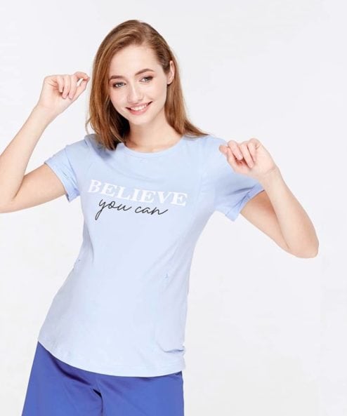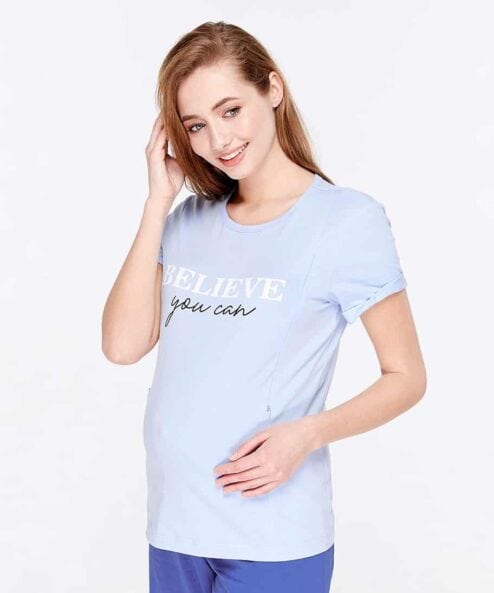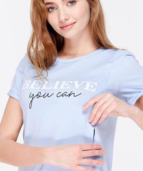 Голубая футболка с принтом для будущих и кормящих мам Believe