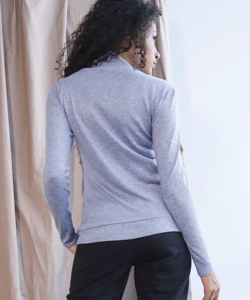 Базовая водолазка — неотъемлемый элемент гардероба беременных и кормящих мам. Мягкая вязаная ткань и комфортный крой позволят носить эту водолазку на любом сроке беременности и после. А базовый цвет легко впишет ее в любой гардероб. Для грудного вскармливания предназначены потайные молнии в рельефах.