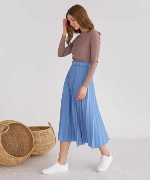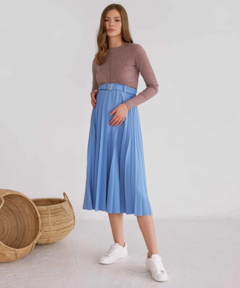 Стильная юбка-плиссе, которая подойдет на весь срок беременности и после. Пояс выполнен в виде комфортной резинки и дополнен шлевками, чтобы вы могли носить юбку с любимым ремнем. Материал юбки позволит надевать ее в любое время года, а базовый цвет — создавать большое число комплектов на каждый день и на выход.