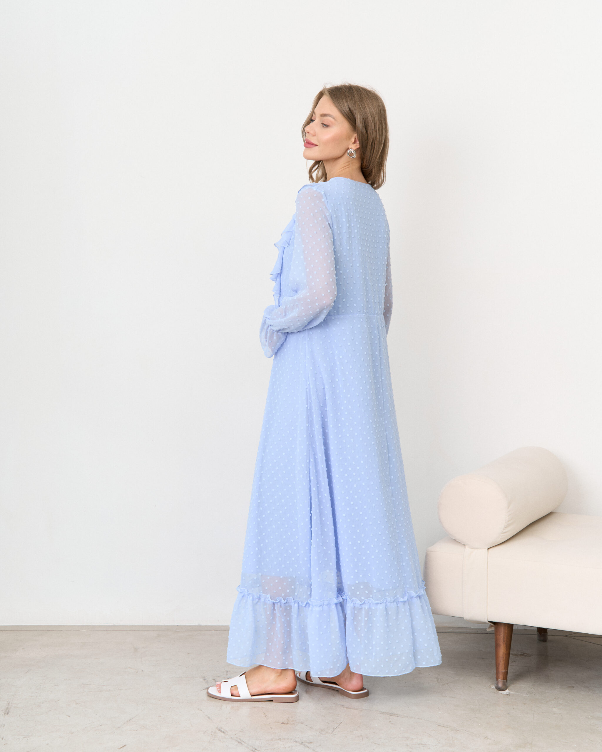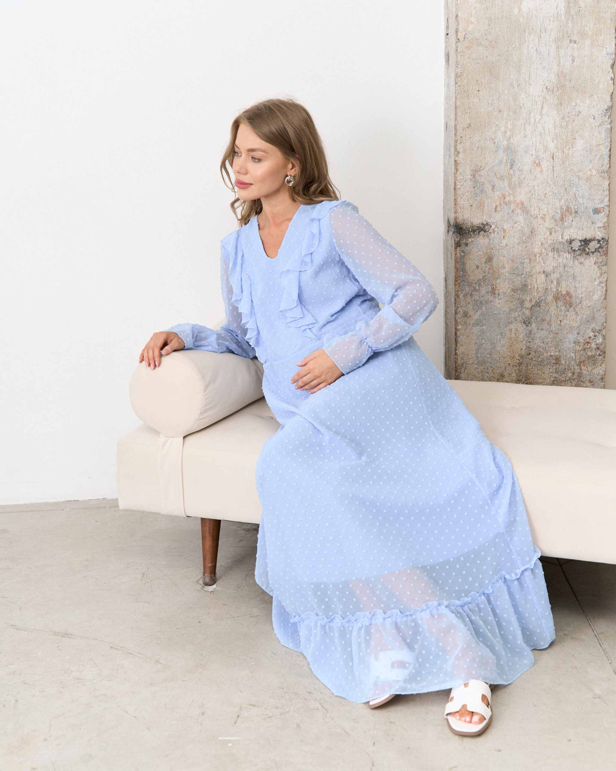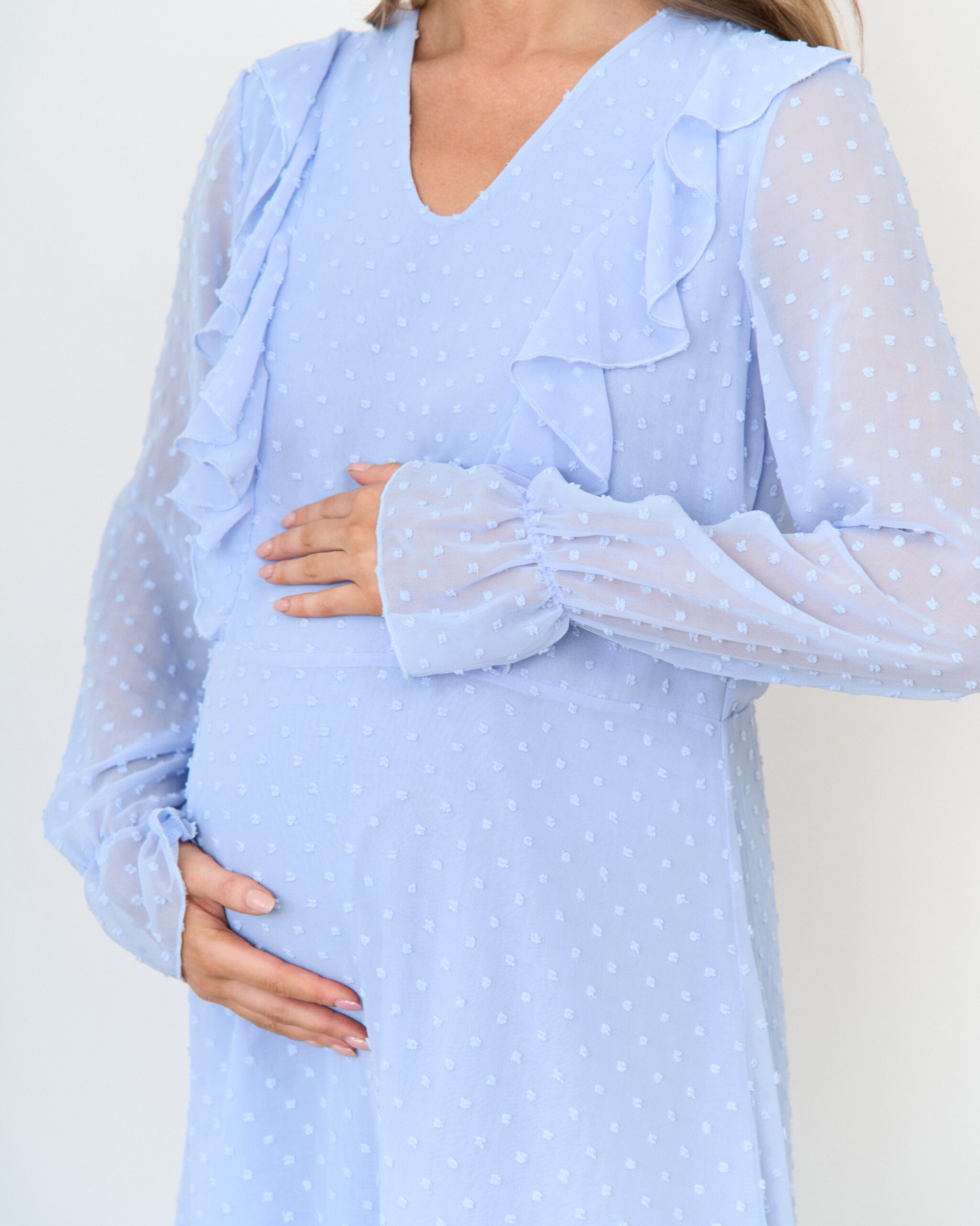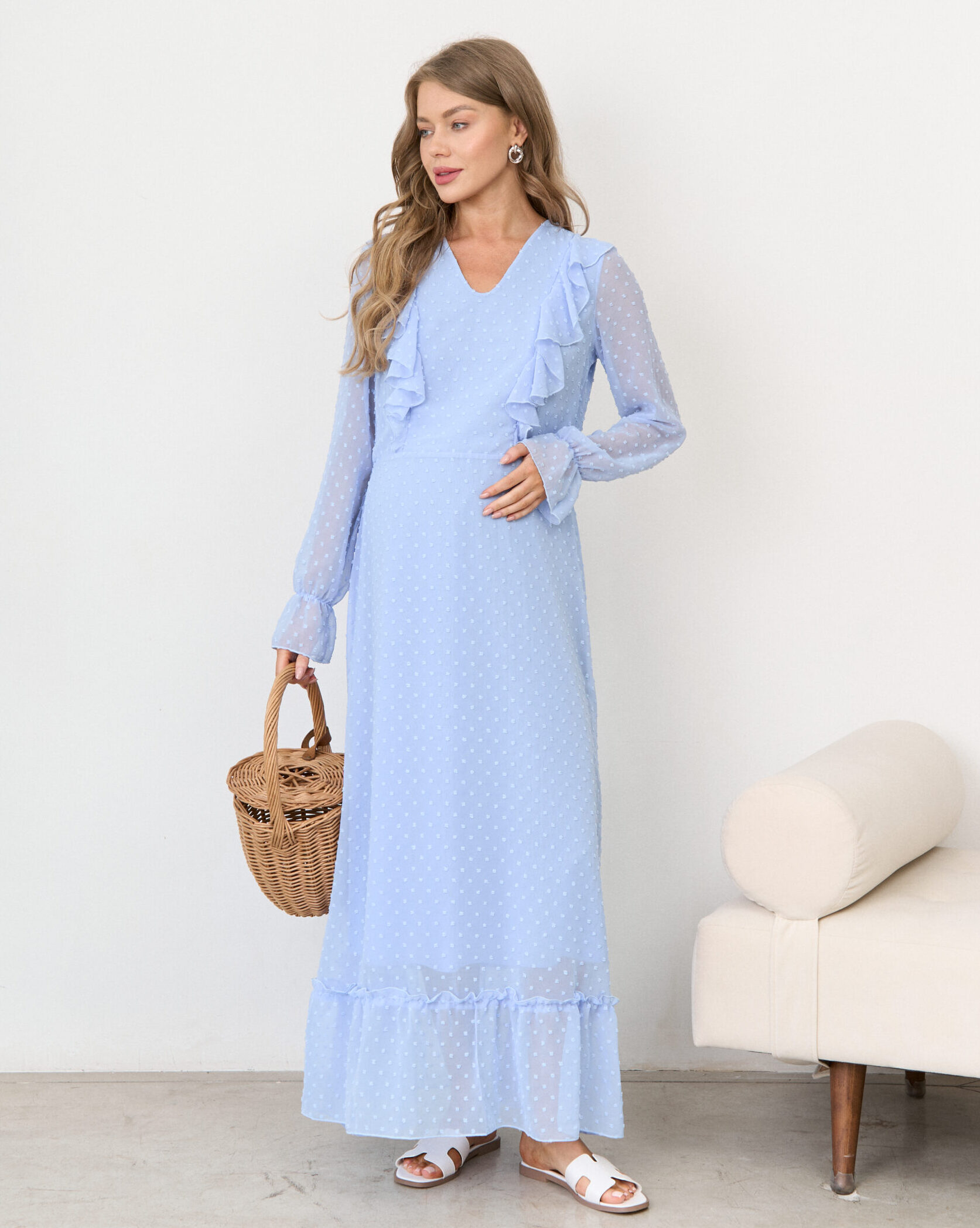 Женственное платье длины макси из струящегося шифона на подкладе из итальянской вискозы. В таком платье вы будете чувствовать себя утонченно и изысканно на любом сроке беременности и после. Для периода грудного вскармливания предназначены незаметные вертикальные молнии.