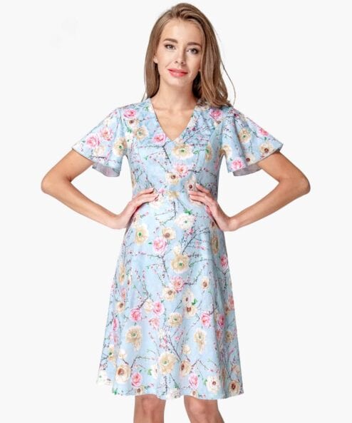 Роскошное платье с цветочным принтом для очаровательных беременных и кормящих мам! Платье  имеет секрет кормления в виде 2-х незаметных вертикальных молний. Секрет позволит мамочке незаметно и комфортно кормить грудью в любом месте и ситуации – парк, самолет, гости, ресторан, магазин – ограничений нет! Можно носить после беременности и грудного вскармливания.