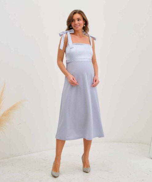 Шикарное платье для беременных и кормящих мам из плотного атлАса в сочетании с мерцающей вискозой. Отлично подойдет для торжественных мероприятий и фотосессий. В таком платье вы будете чувствовать себя утонченно и изысканно на любом сроке беременности и после. Для комфортного кормления малыша просто опустите бретель. Регулируемые завязки позволят  вам посадить платье на любой рост и проявить фантазию — вы можете завязать банты либо оставить ленты спущенными.