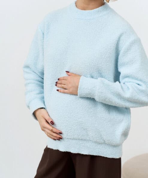 Базовый джемпер с круглой горловиной и спущенной линией плеч, который подойдет на любой срок беременности и после. Мягкая эластичная вязка и мягкий состав пряжи подарят комфорт в любое время года.