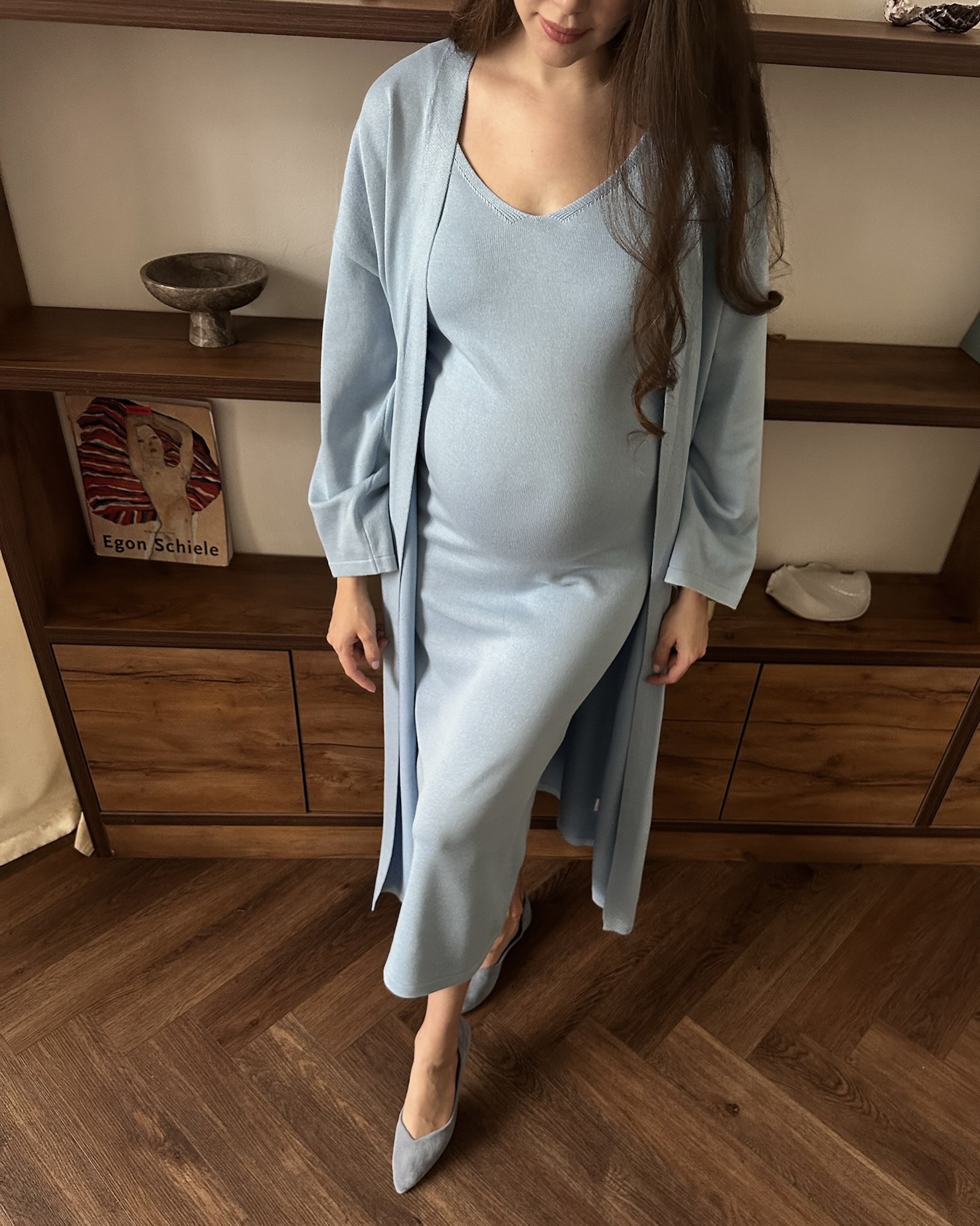 А хлопок в составе подарит тепло и комфорт в любое время года. Подойдет на весь период беременности и после.