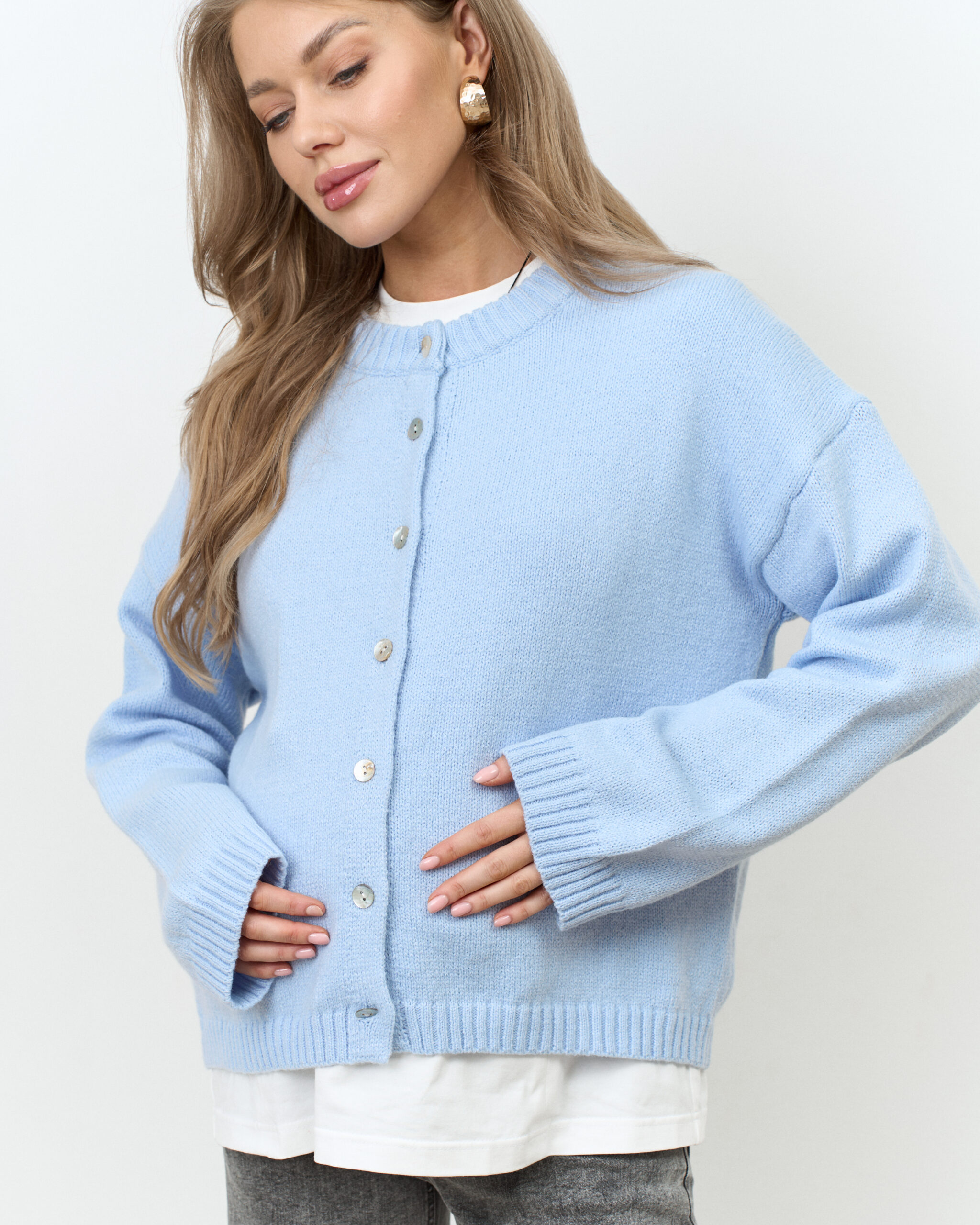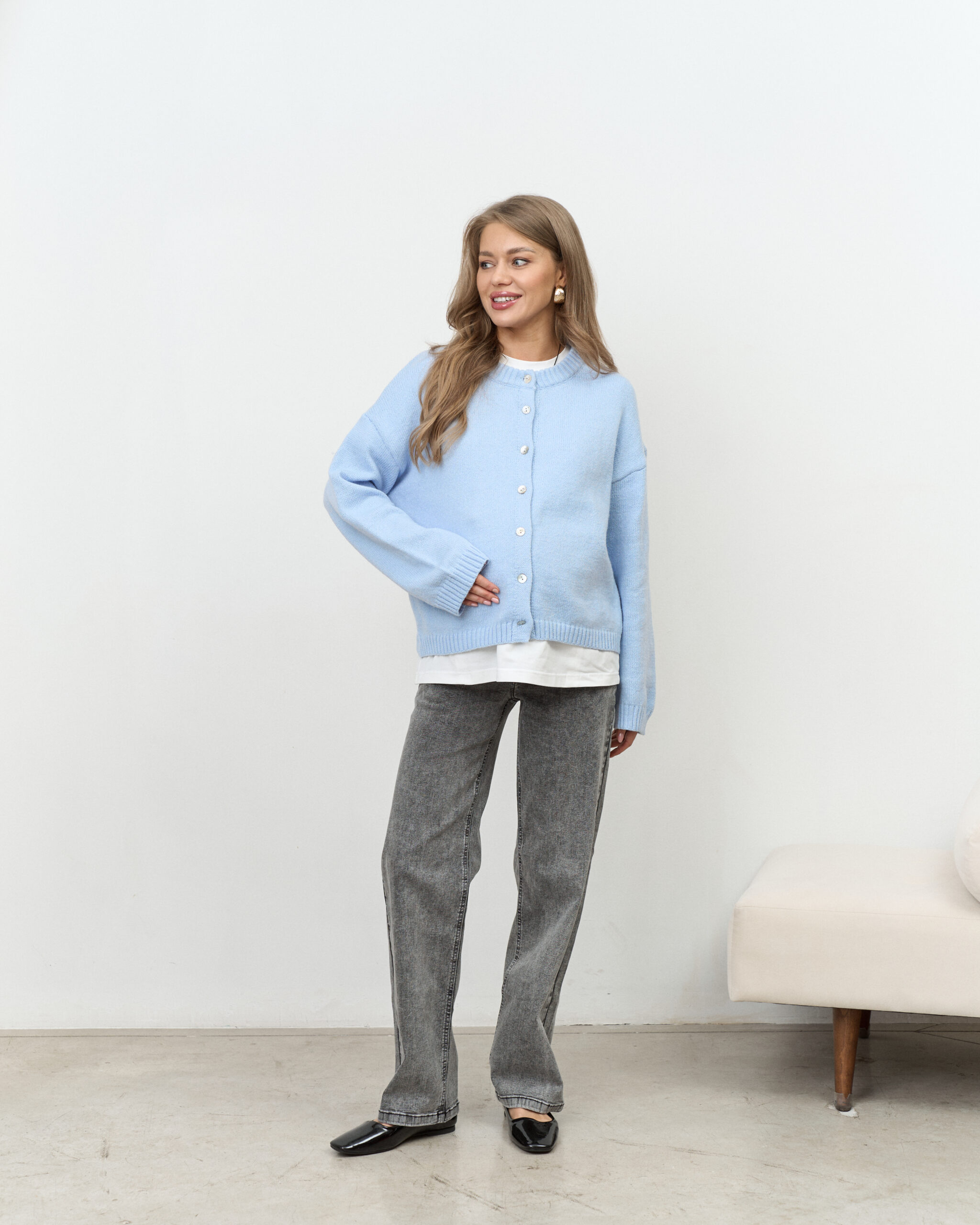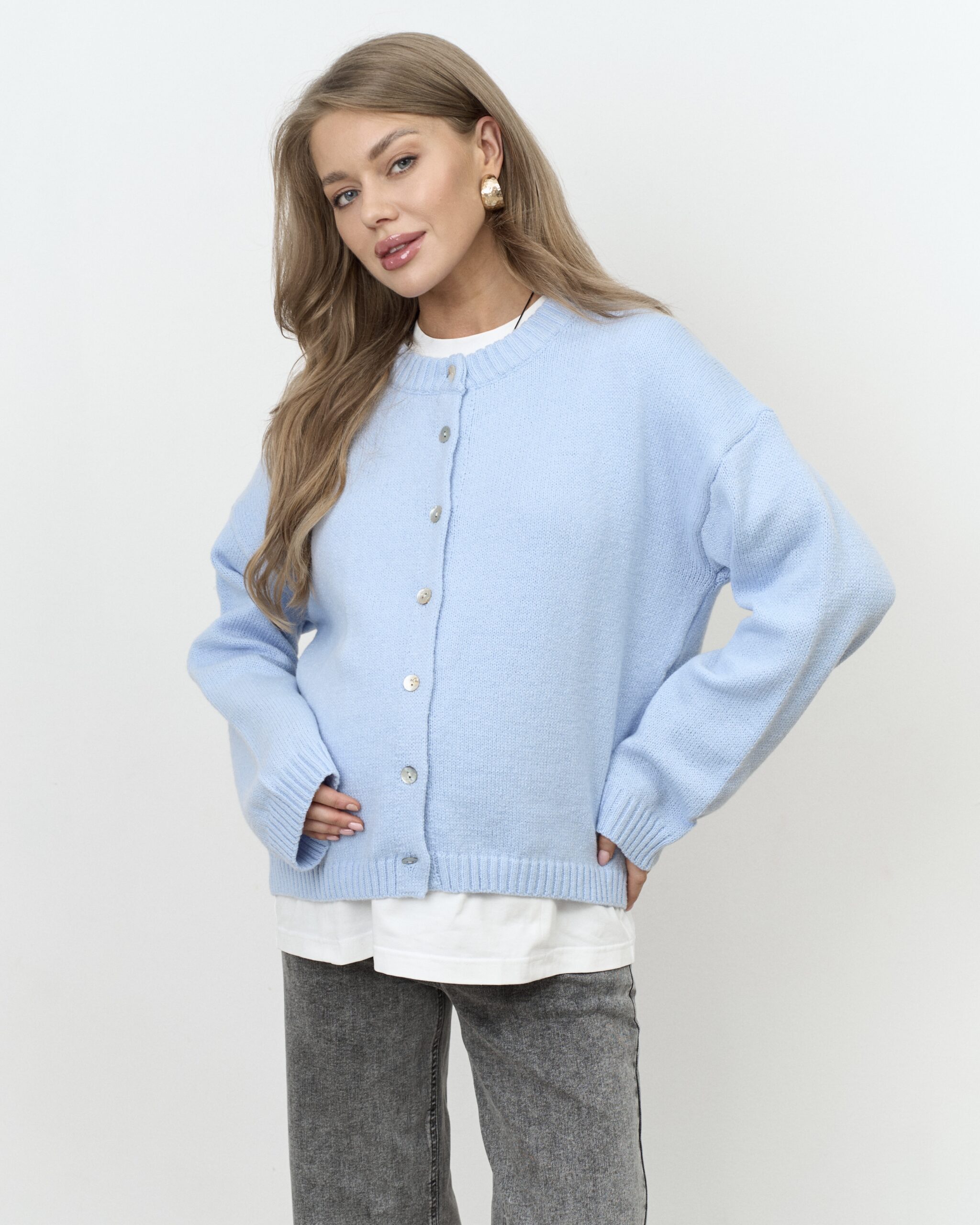 Базовый кардиган свободного кроя на пуговицах. Прекрасно подойдет в качестве второго слоя или как отдельный элемент одежды.