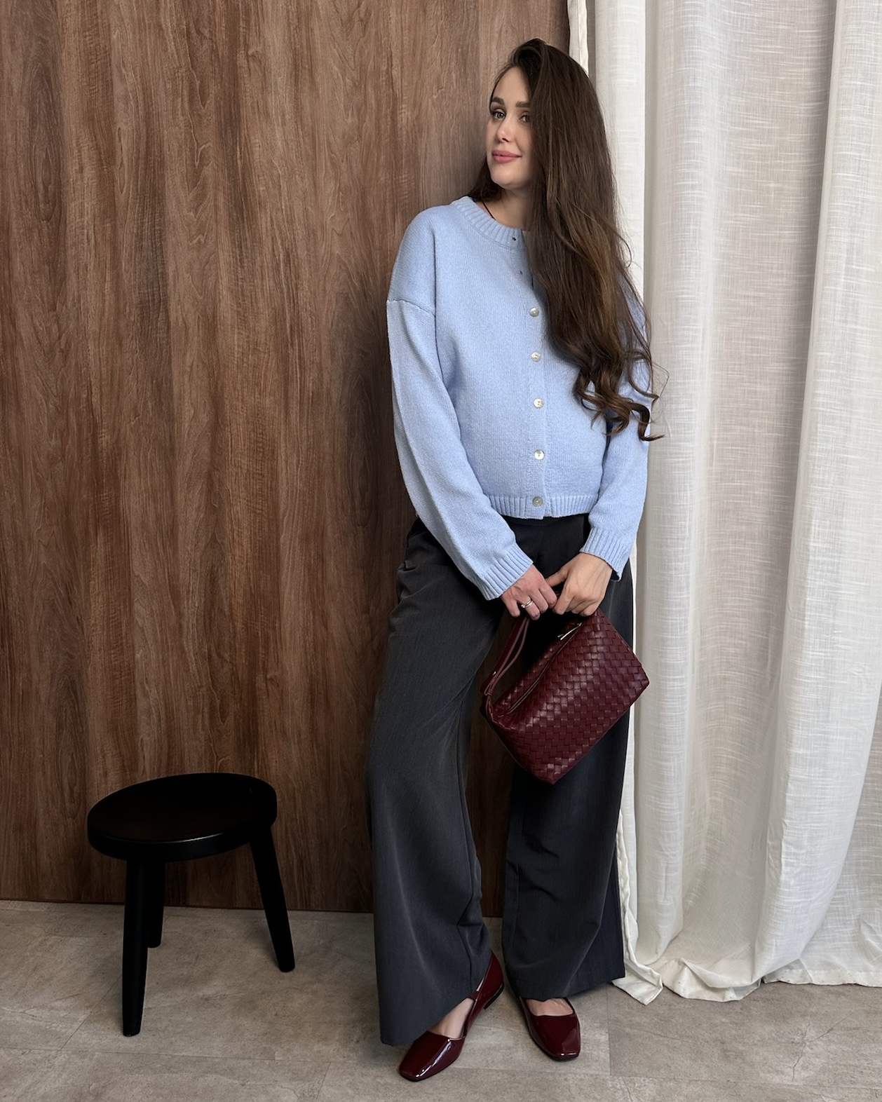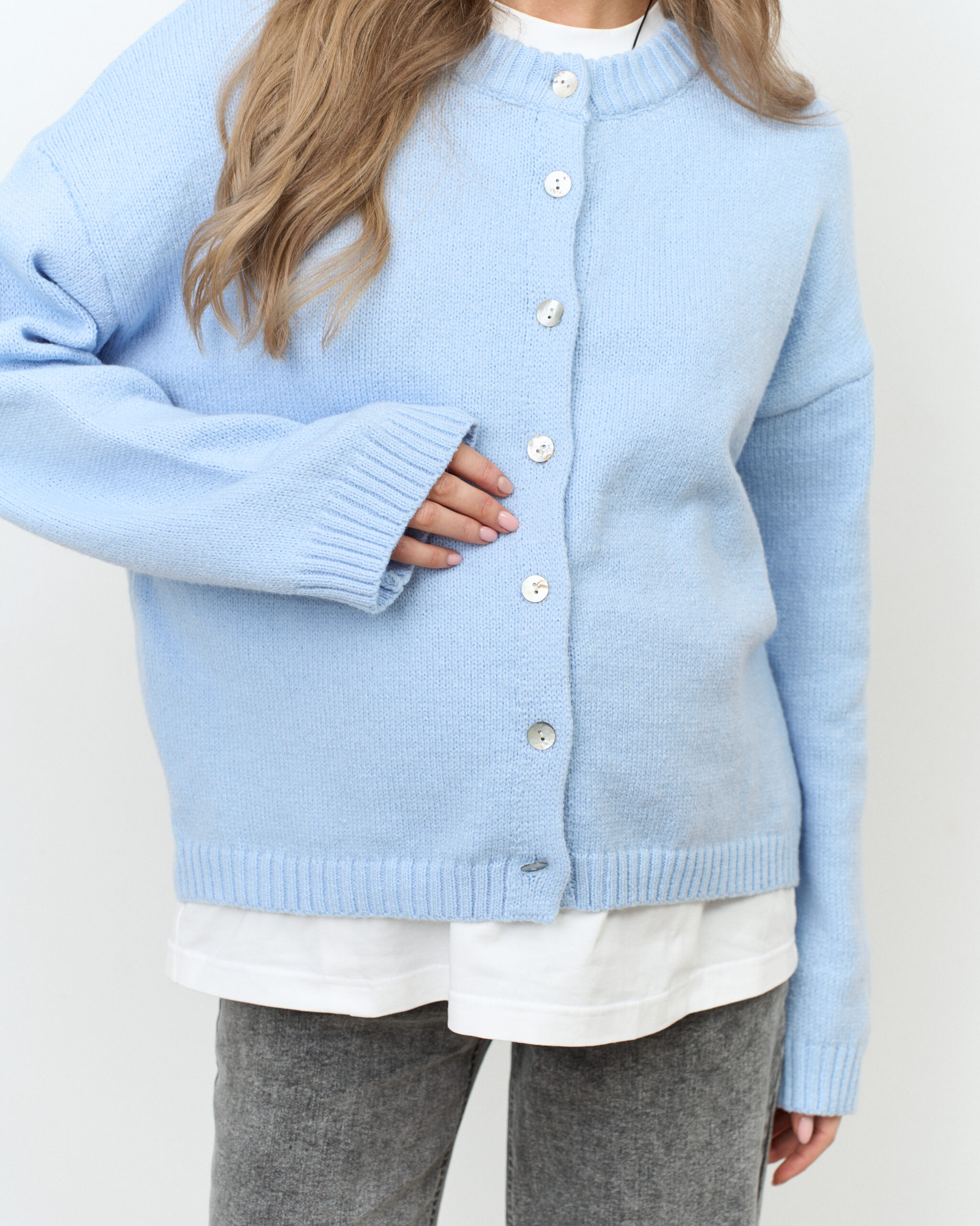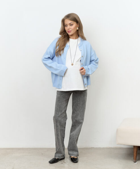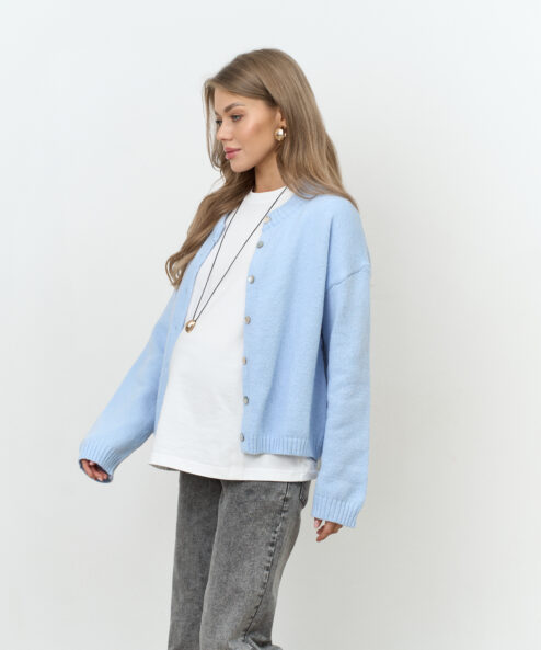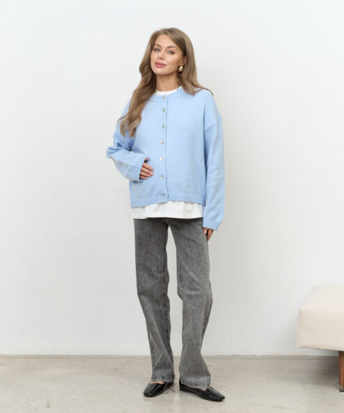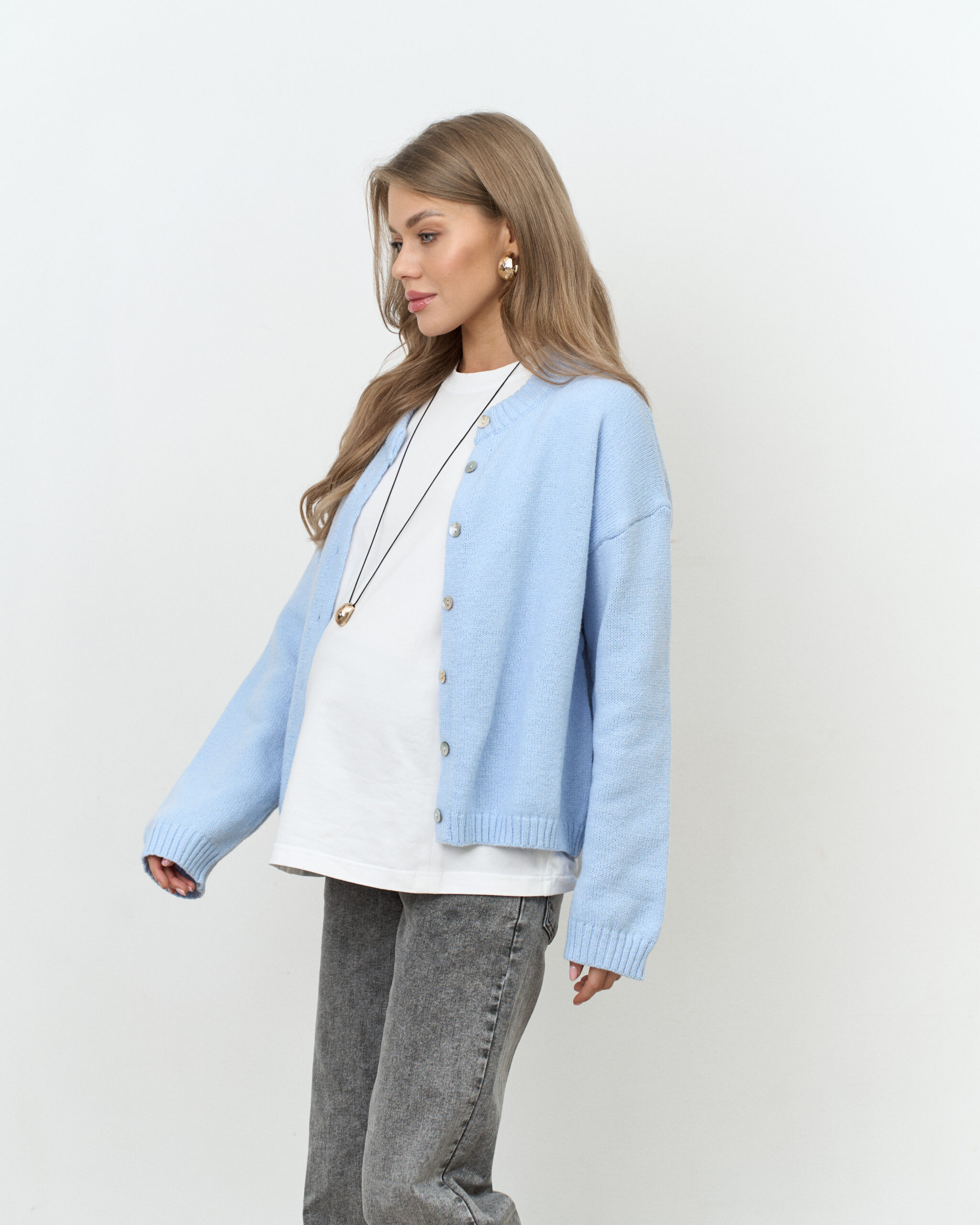 Базовый кардиган свободного кроя на пуговицах. Прекрасно подойдет в качестве второго слоя или как отдельный элемент одежды.
