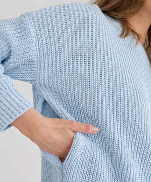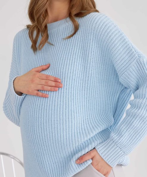 Хлопковый свитер с круглой горловиной и спущенной линией плеч, который подойдет на любой срок беременности и после. Мягкая эластичная вязка и натуральный состав пряжи подарят комфорт в любое время года. А приятные базовые цвета и актуальный крой позволят создать стильные образы. Для кормления малыша предназначены потайные молнии в боковых швах.