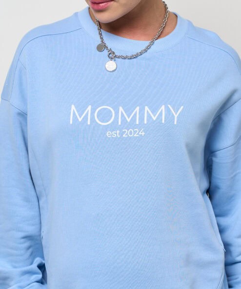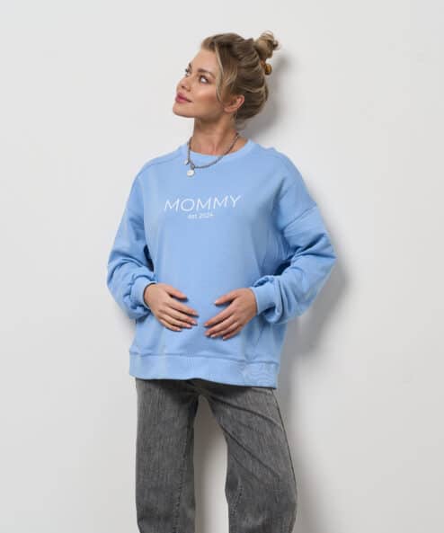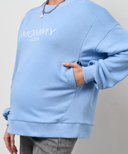 Свитшот из плотного хлопкового трикотажа с петельной изнанкой, который подойдет на весь период беременности и после.