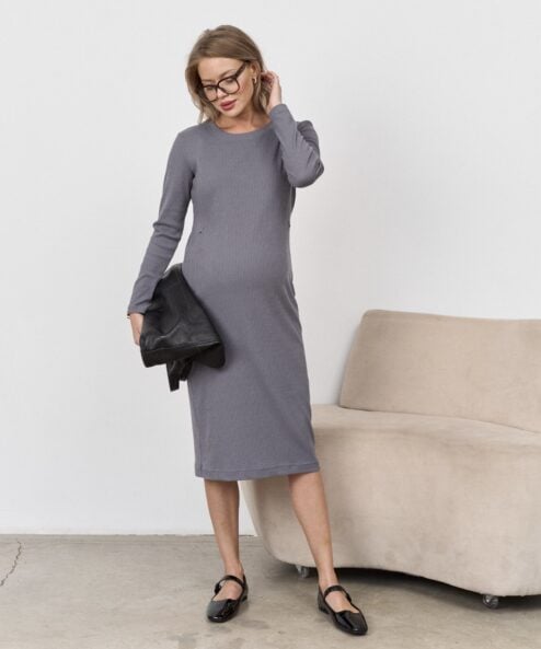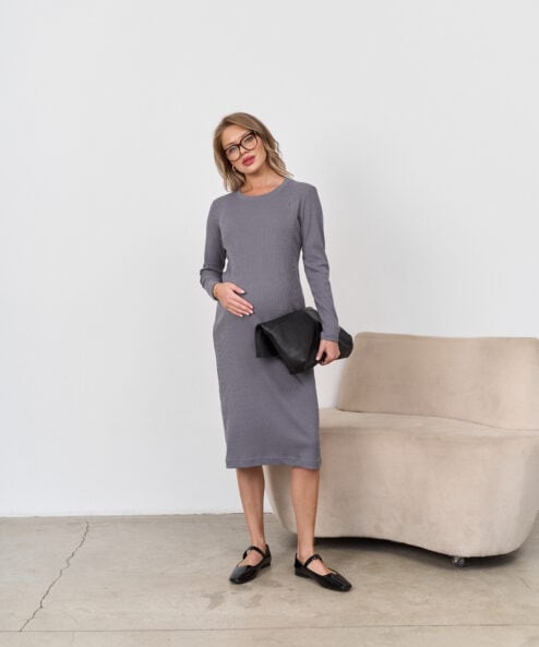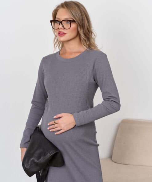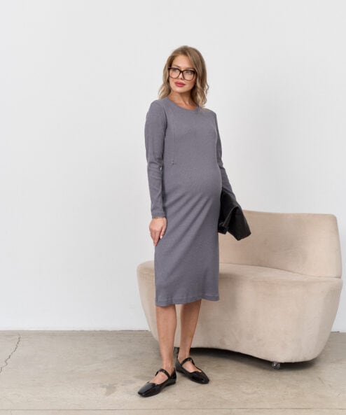 Графитовое платье-лапша для будущих и кормящих мам Lira