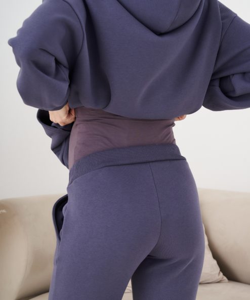 Брюки для будущих мам из футера высшего качества «пенье» с начесом. Бандажный пояс и отделка штанин выполнены из рибаны. На поясе дополнительно предусмотрена высокая трикотажная вставка на животик с регулировкой объема. В комплект к брюкам вы можете приобрести теплое худи Juna